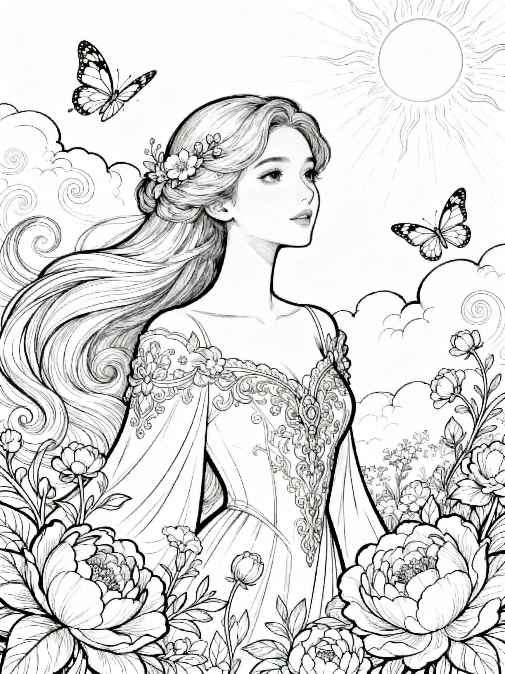 Lose yourself in enchanted worlds with whimsical fairytale beauties coloring pages. These pages feature princesses, magical creatures, and stunning fantasy backgrounds.