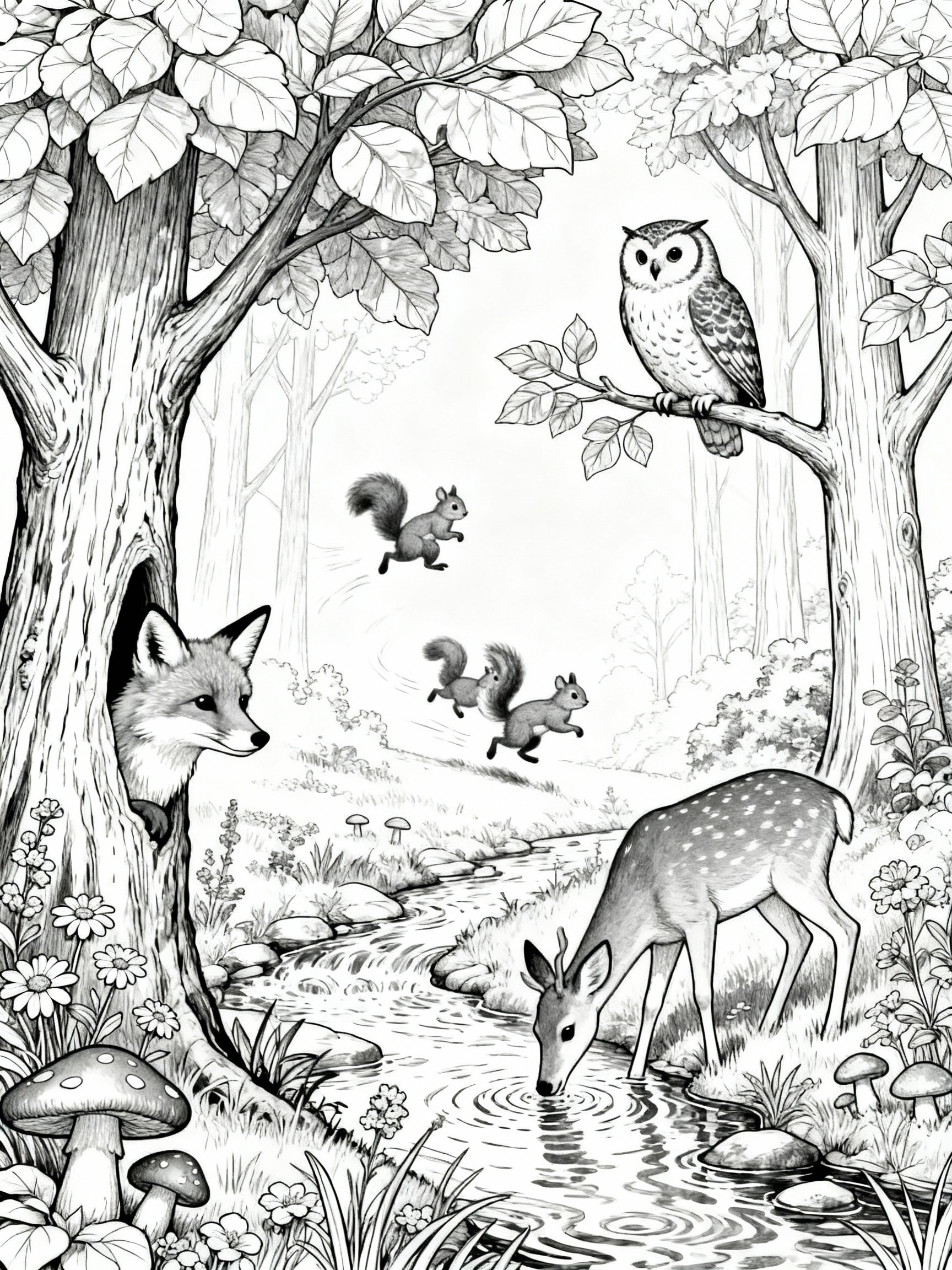 Coloring pages of forest animals invite kids to dream up new stories and worlds. Maybe a squirrel wears a purple hat, or an owl flies under a rainbow sky. These pages are the perfect canvas for experimenting with color and inventing imaginative scenes.