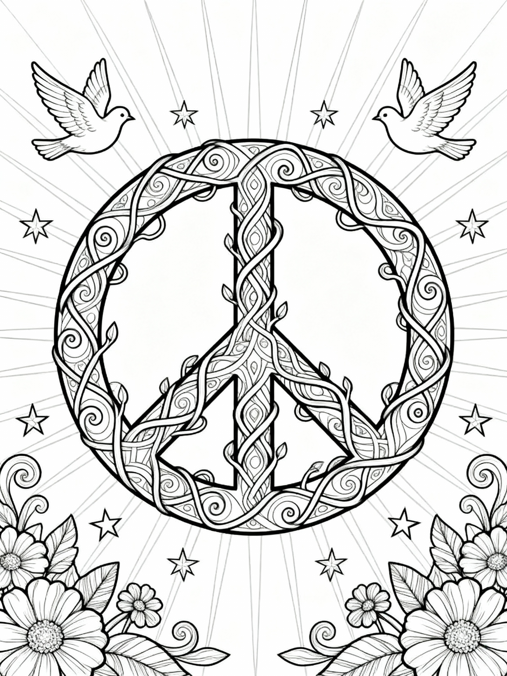 Nature-inspired coloring pages peace sign ideas are blooming in popularity as eco-awareness grows. Imagine a peace sign formed from intertwining flowers, curling vines, and leafy branches. These designs symbolize the harmony between people and the planet, creating a calming and grounding coloring experience.