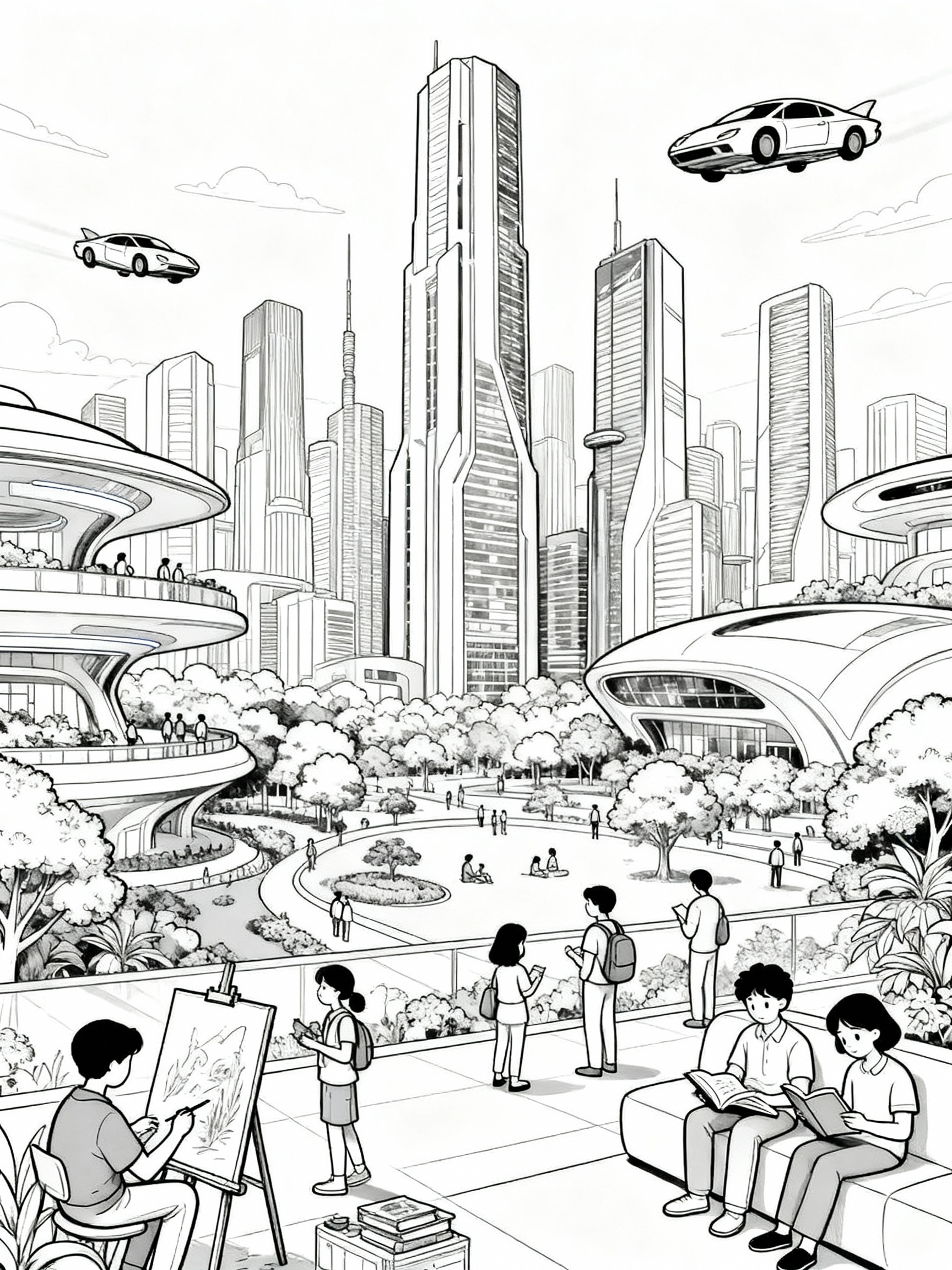 Step into tomorrow with colouring in pictures to print featuring dazzling futuristic cityscapes. These printable pages are filled with robots, flying cars, and neon-lit skyscrapers, making them a hit with sci-fi fans and tech enthusiasts alike.