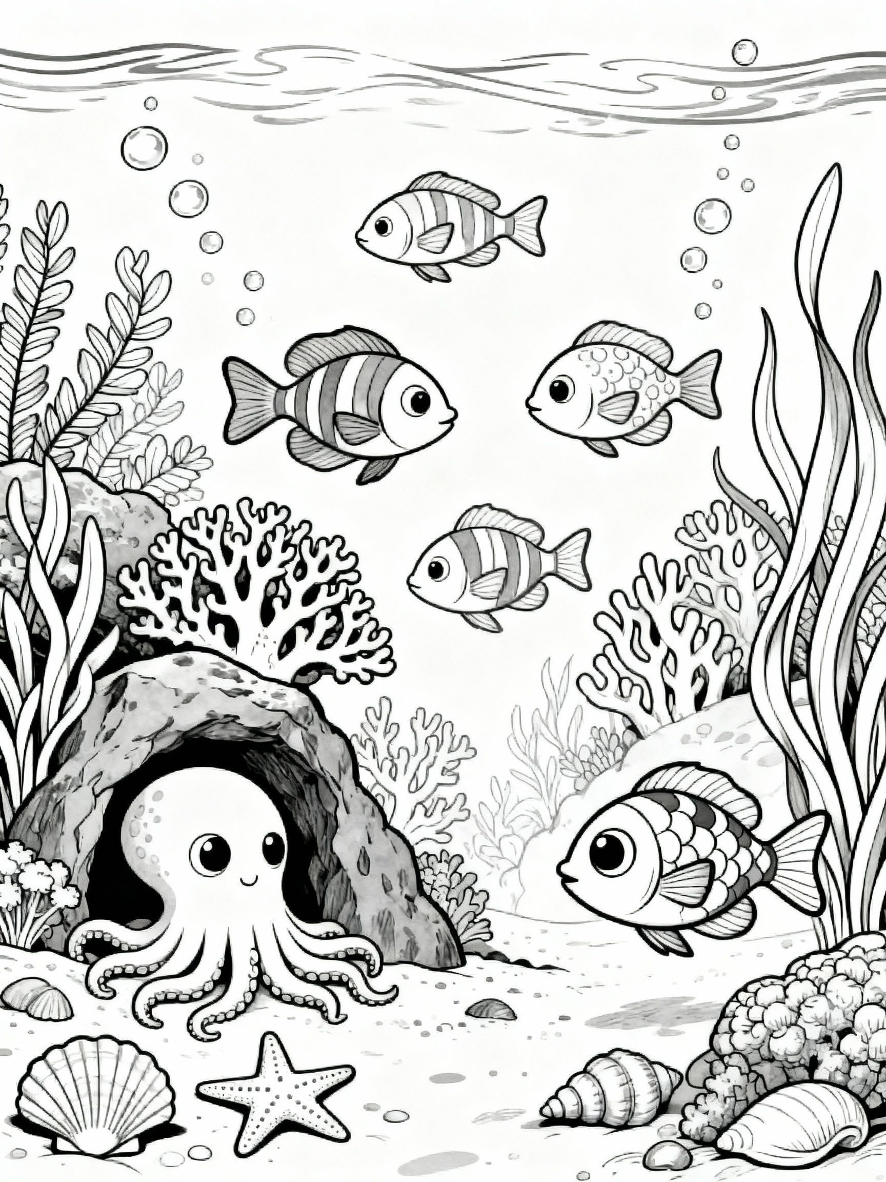These images are perfect for sparking creativity and encouraging imaginative play. Kids can invent entire kingdoms beneath the sea, complete with royal fish, secret passages, and mystical creatures.