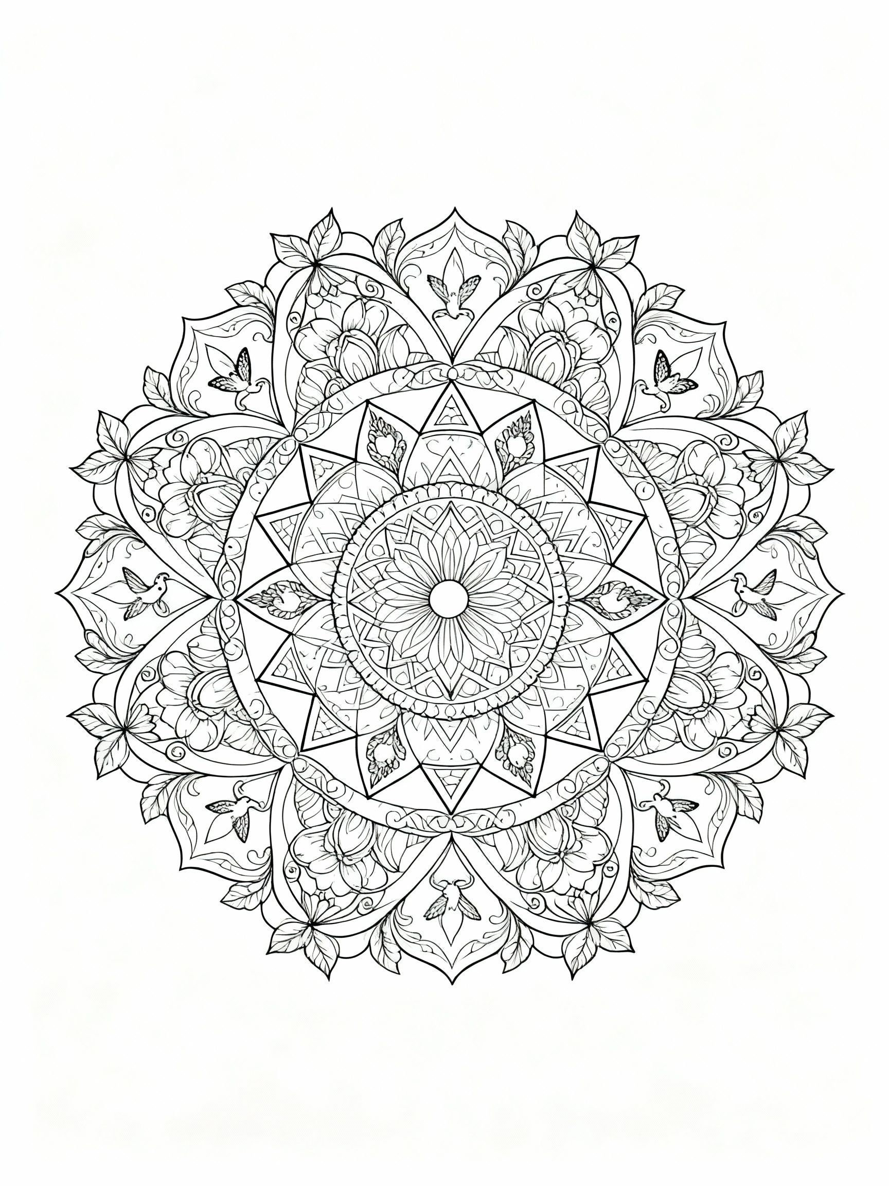 The Geometric Harmony mandala coloring printable features mesmerizing, repeating shapes that invite you to lose yourself in intricate patterns. This design stands out for its precision and balance, making it a favorite among advanced colorists who enjoy a challenge.