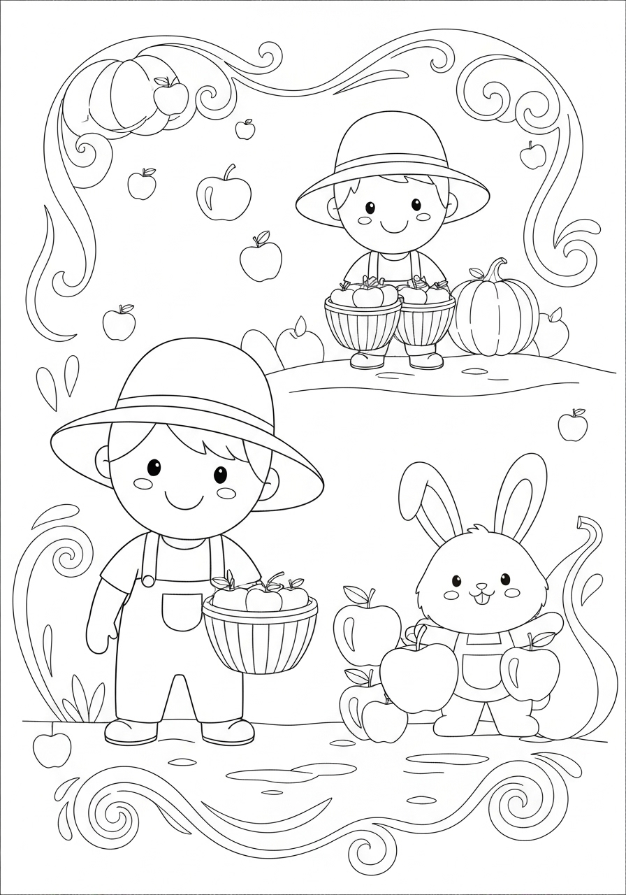 Dive into the enchanting world of autumn with this Beautiful Harvest Time Fun Coloring Page, featuring an abundance of pumpkins, colorful leaves, and playful farm animals that spark creativity and joy. Perfect for kids ages 5 and up, this delightful design invites young artists to explore their imagination while enjoying a fun and engaging coloring experience.