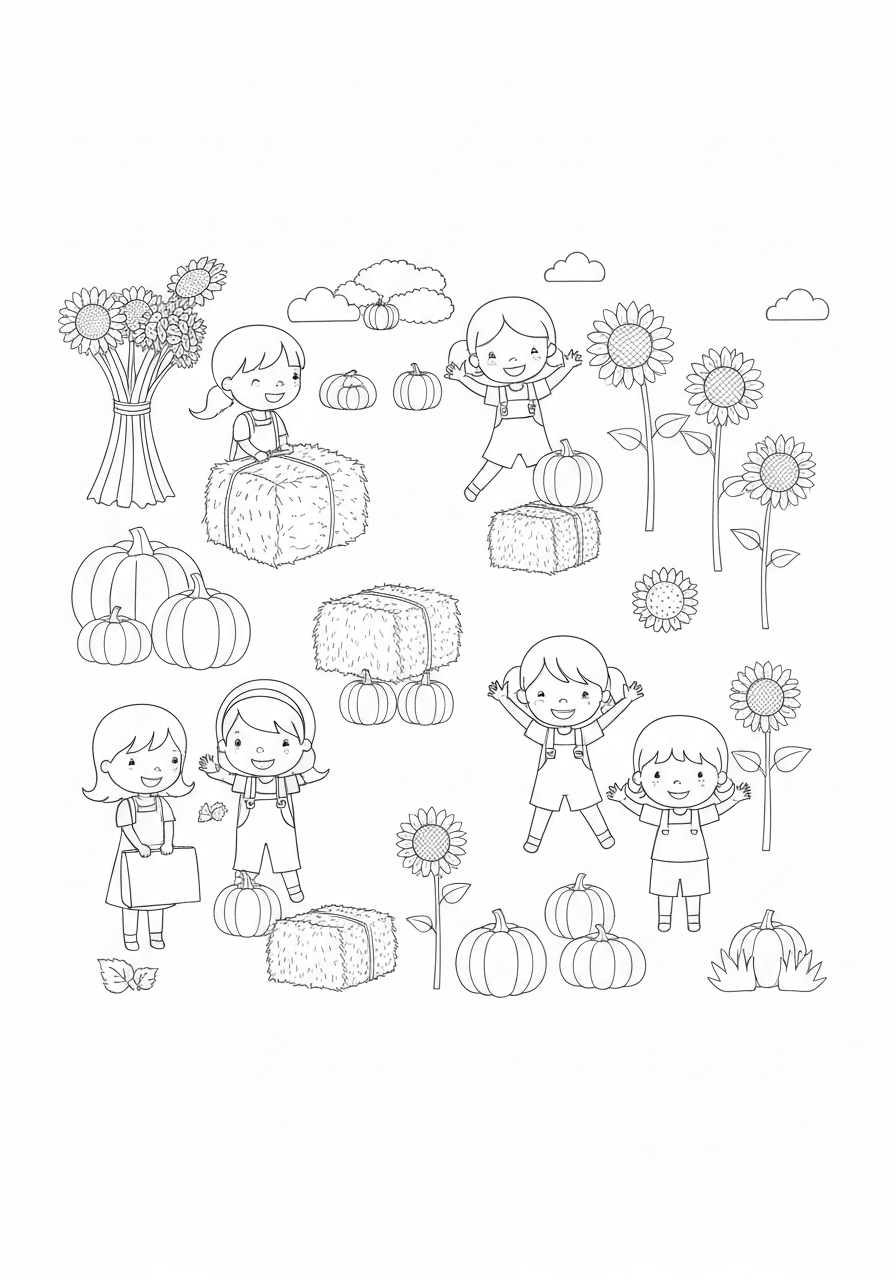 Download: Joyful Cute Harvest Time Fun Coloring Page