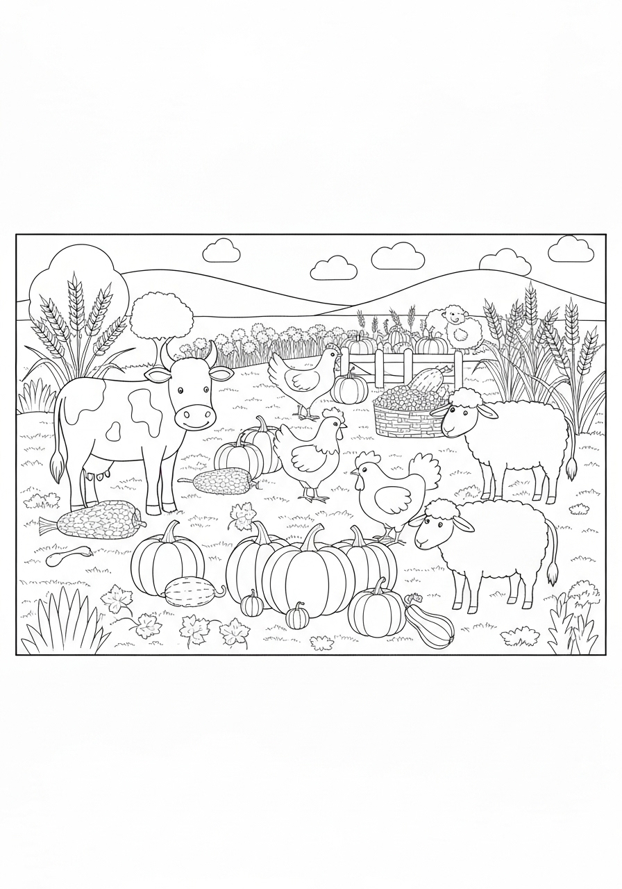 This delightful 'Nice Cute Harvest Time Fun' coloring page features charming autumn scenes with adorable farm animals, vibrant pumpkins, and playful foliage, making it a perfect choice for children aged 4-10. With its whimsical designs and inviting details, it's sure to spark creativity and bring joy during the harvest season!
