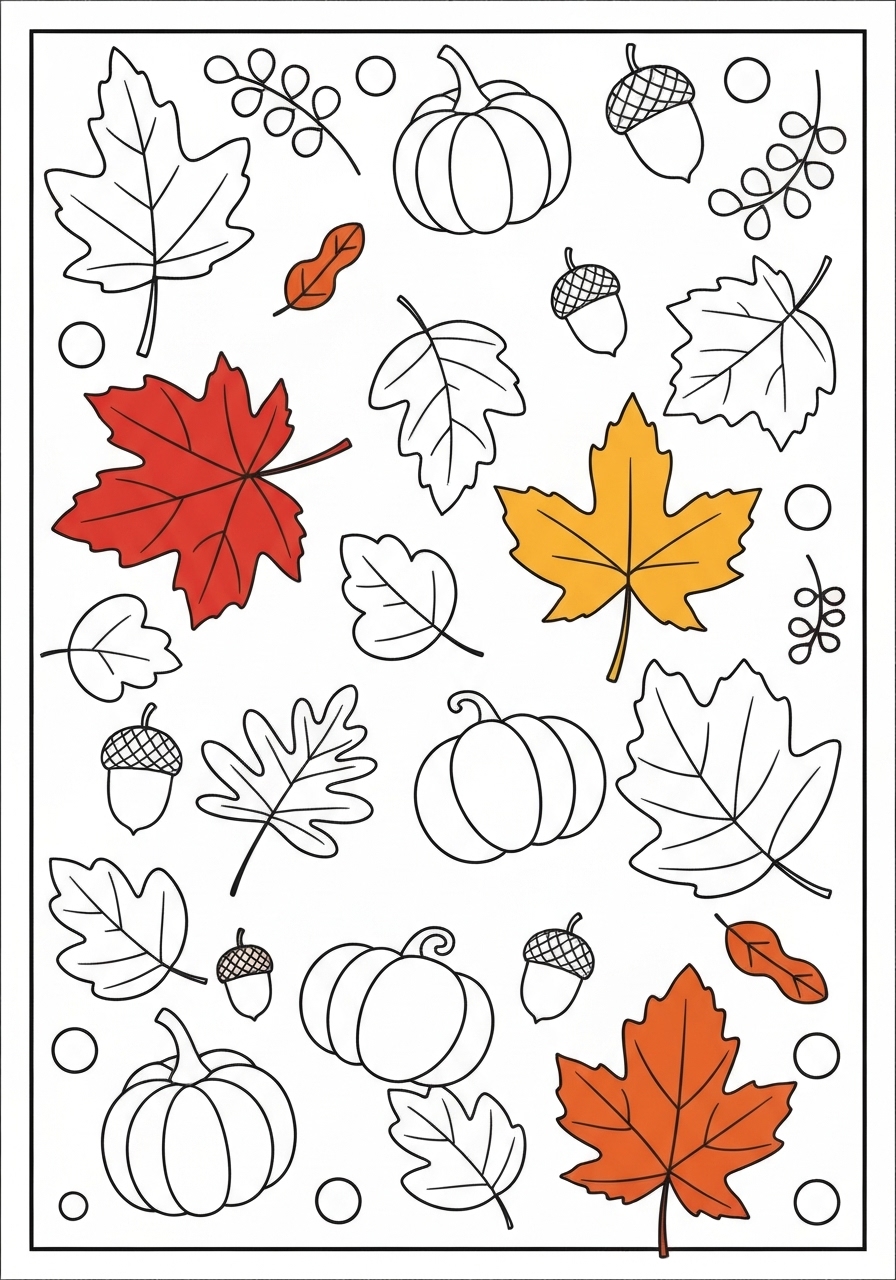 Amazing Festive Fall Foliage With Patterns Coloring Page