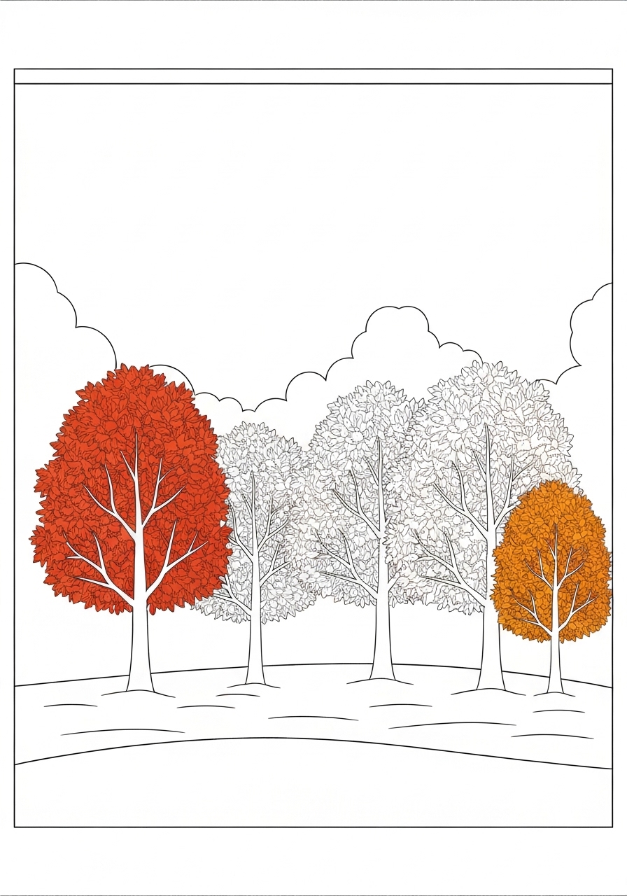 Delightful Cartoon Festive Fall Foliage Coloring Page