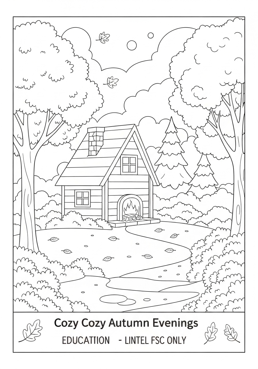 Enchanting Cozy Autumn Evenings Coloring Page