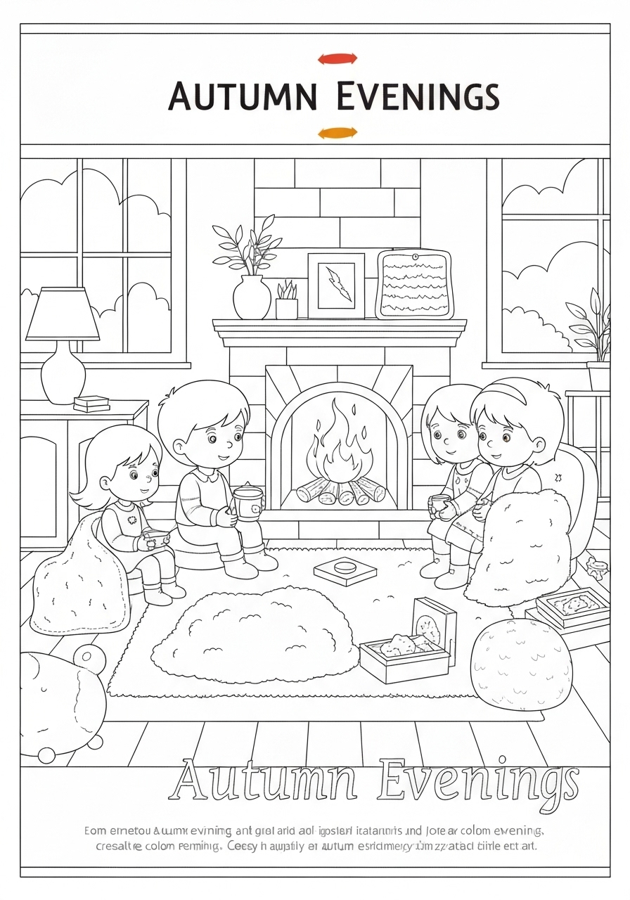 Joyful Cozy Autumn Evenings In Nature Coloring Page
