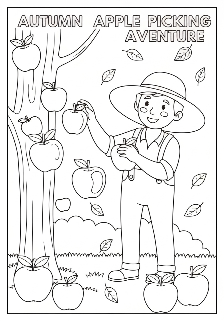 Download: Beautiful Autumn Apple Picking Adventure Coloring Page
