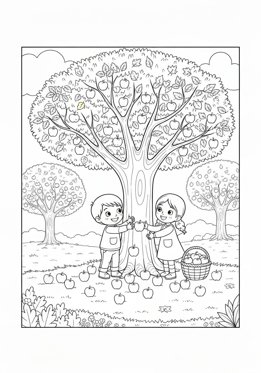 Delightful Festive Autumn Apple Picking Adventure Coloring Page