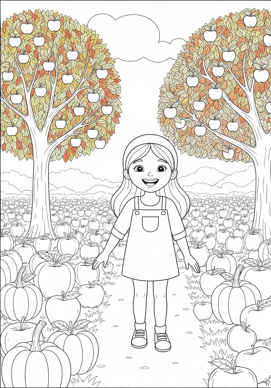 Download: Fun Autumn Apple Picking Adventure Coloring Page