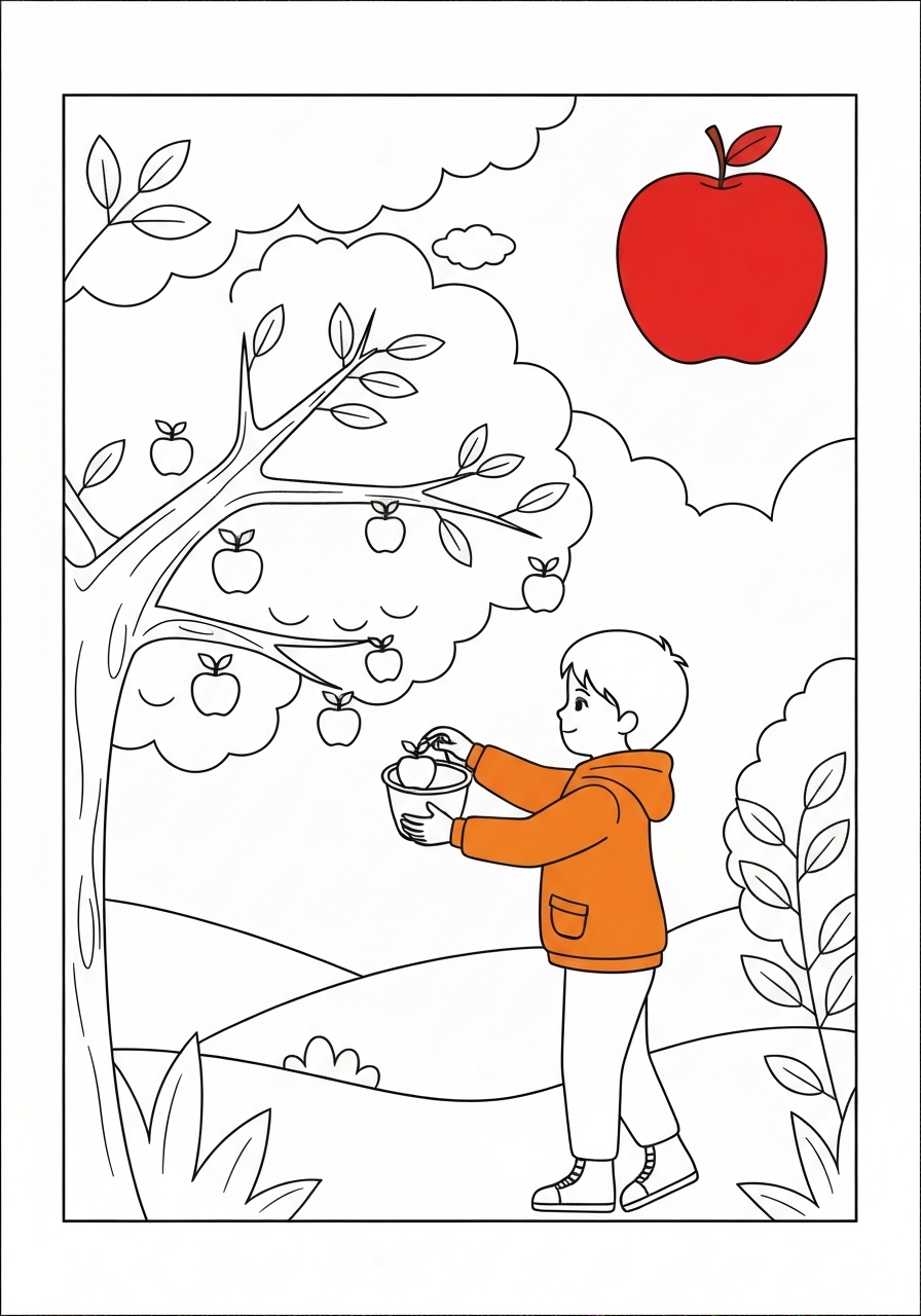 Joyful Festive Autumn Apple Picking Adventure Coloring Page