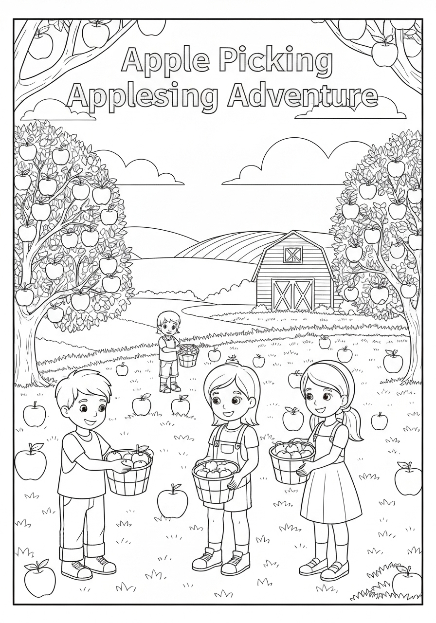 Nice Festive Autumn Apple Picking Adventure Coloring Page
