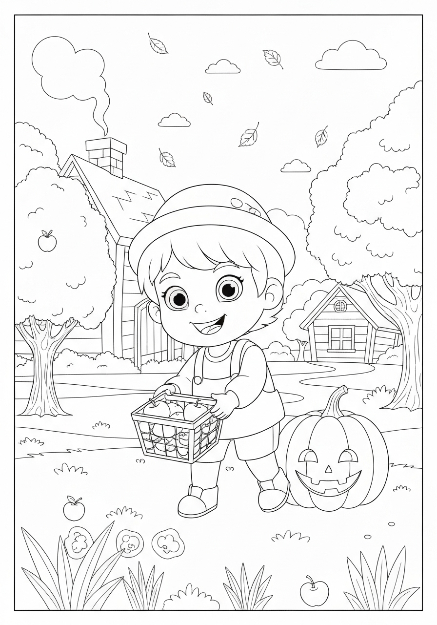 Perfect Autumn Apple Picking Adventure Coloring Page