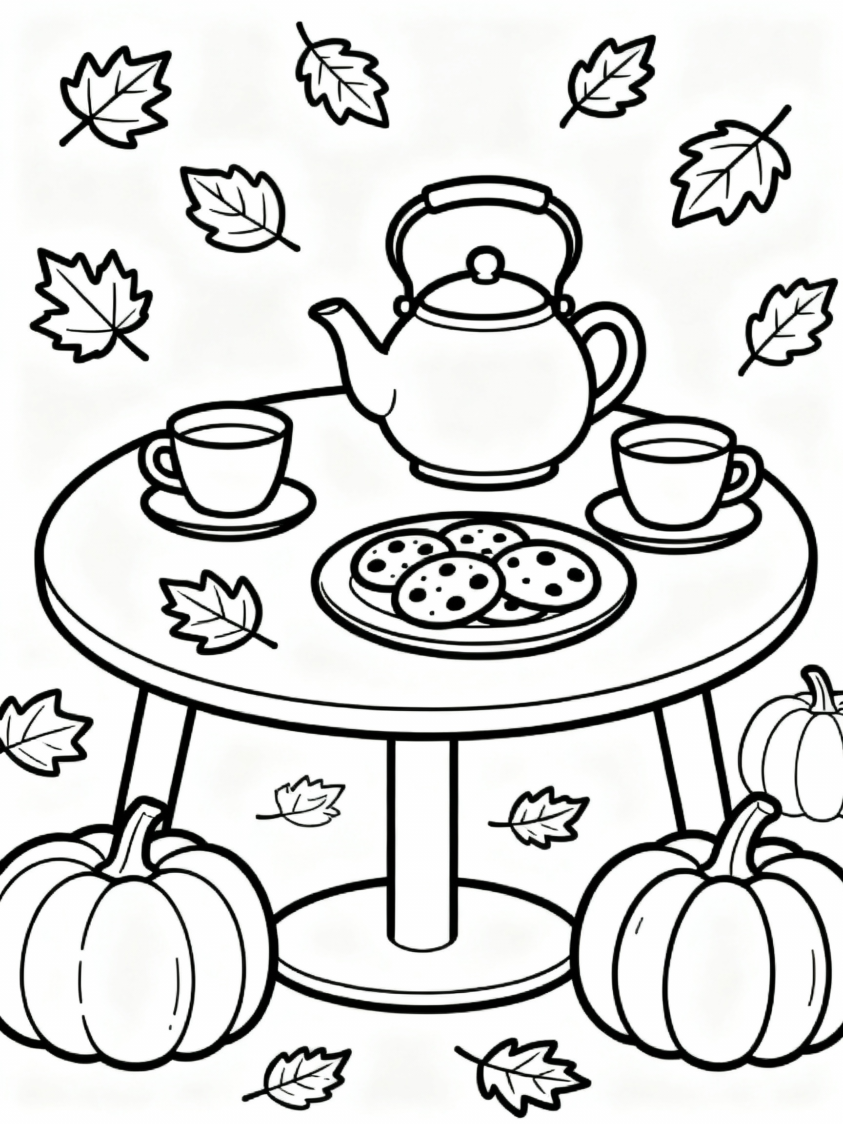 Download: Fun Cozy Fall Tea Party Coloring Page