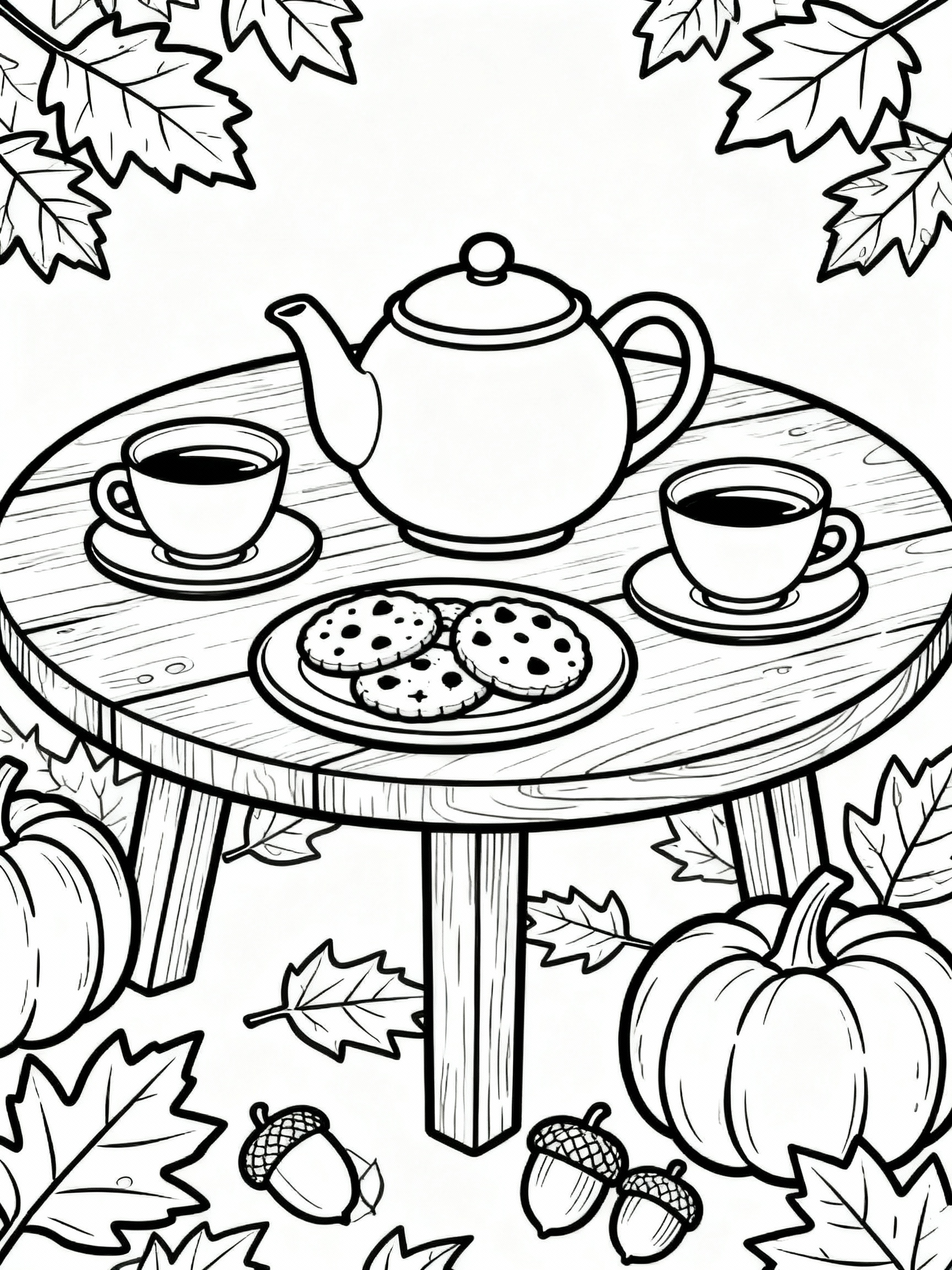 Happy Cozy Fall Tea Party Coloring Page