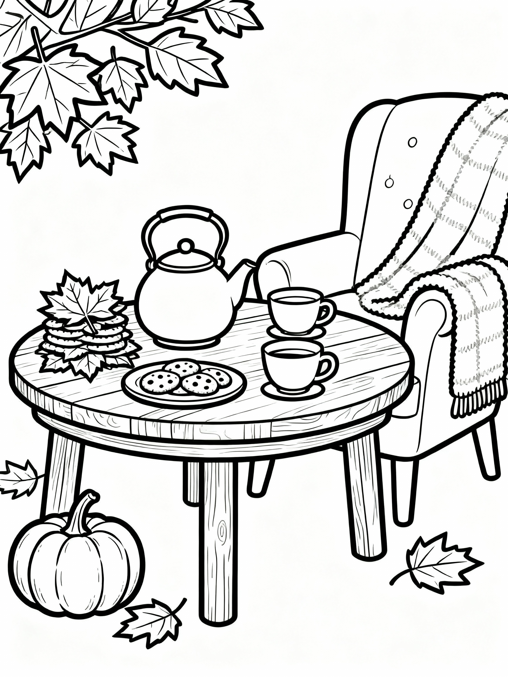 Download: Lovely Cozy Fall Tea Party Coloring Page