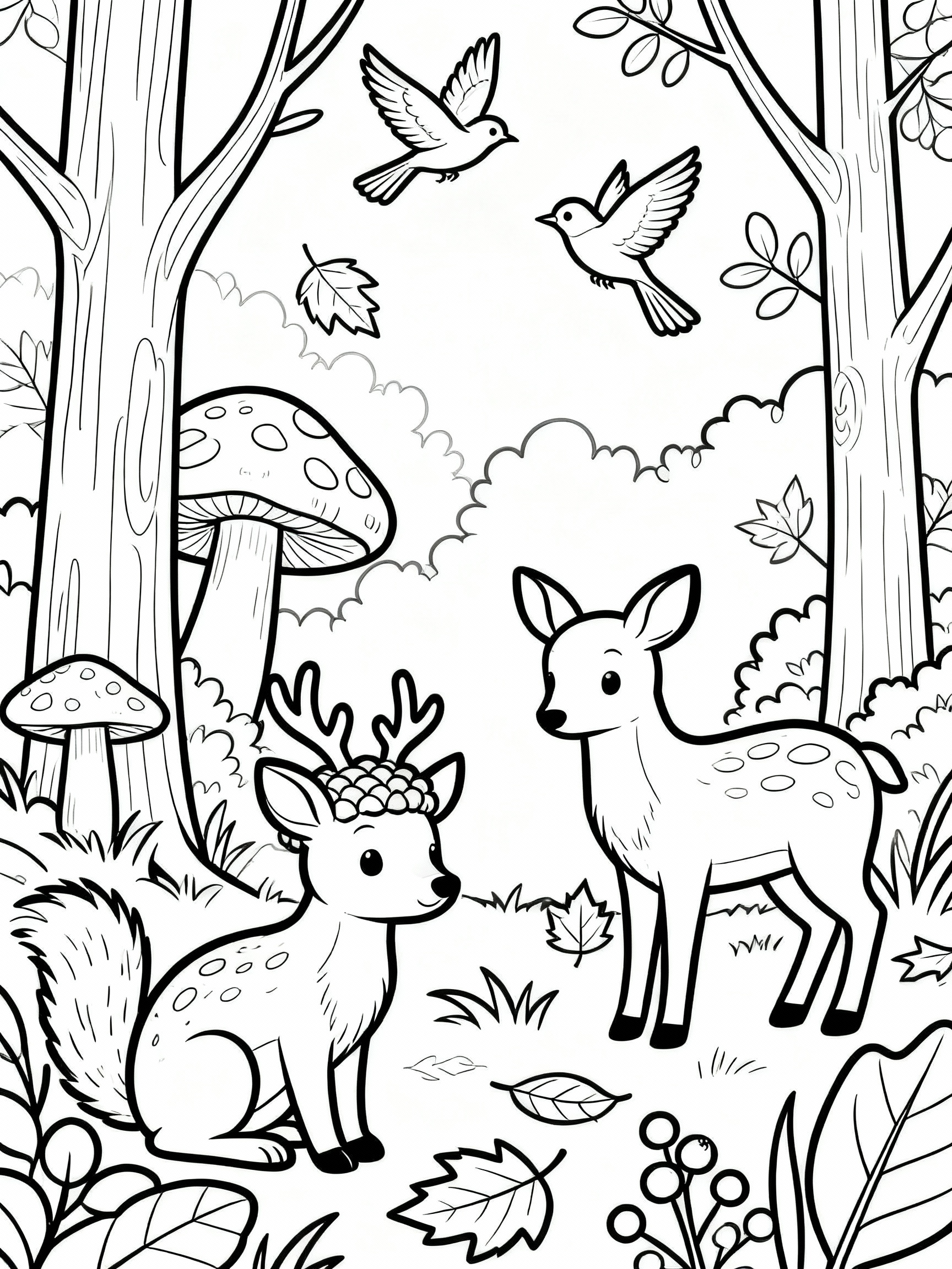 Download: Amazing Autumn Woodland Creatures In Nature Coloring Page