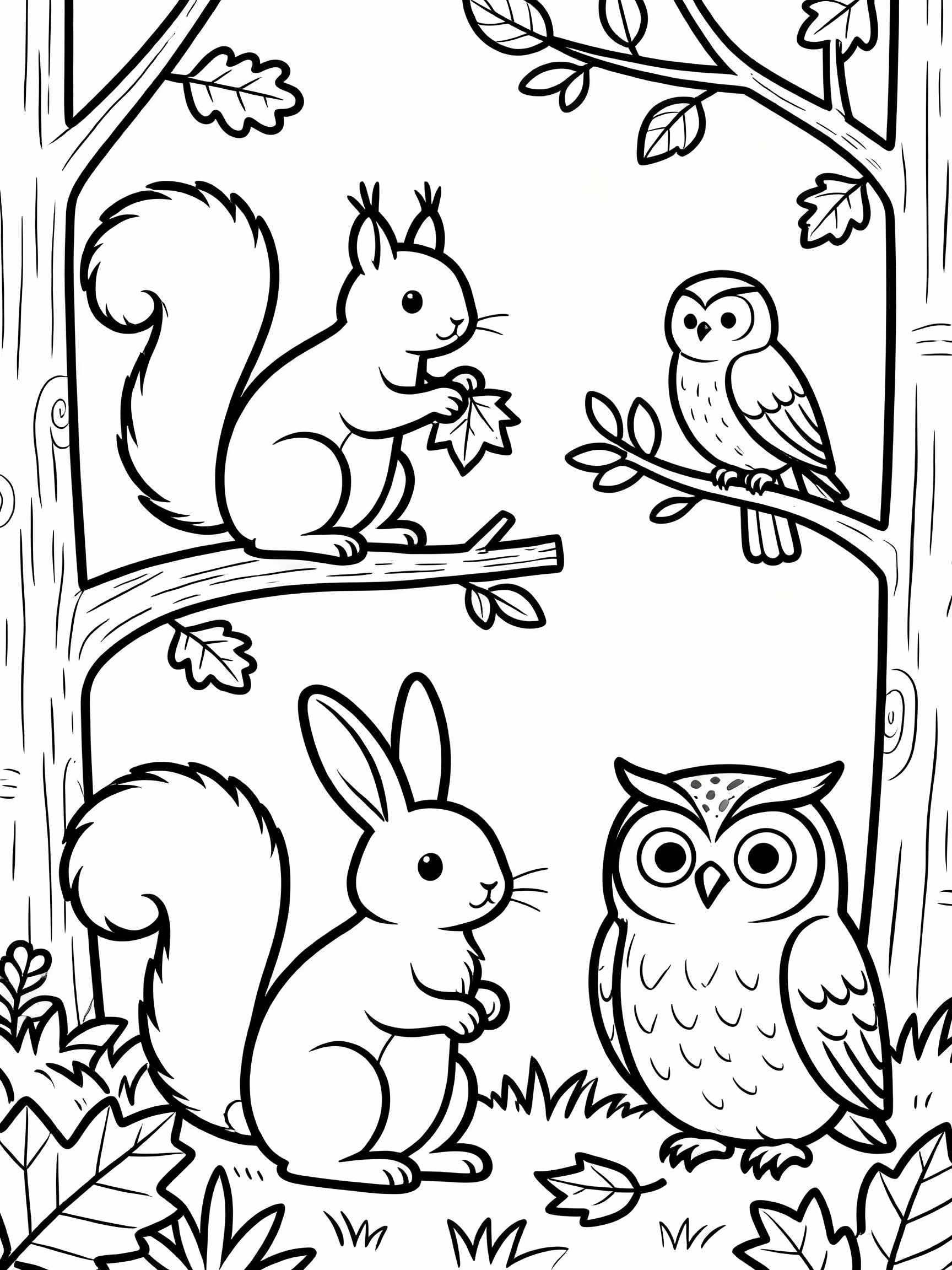 Download: Fun Autumn Woodland Creatures Coloring Page