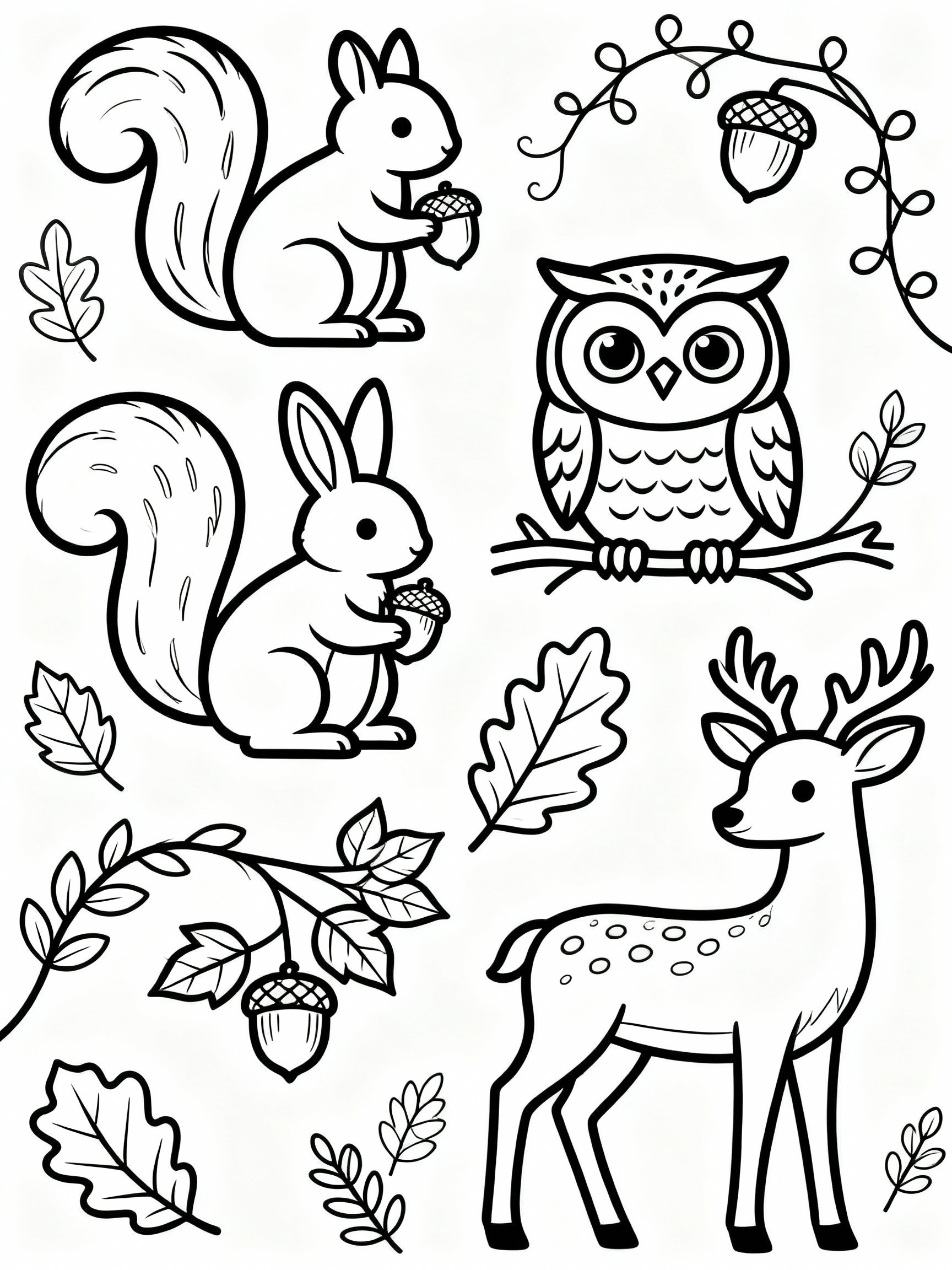 Download: Lovely Autumn Woodland Creatures Coloring Page