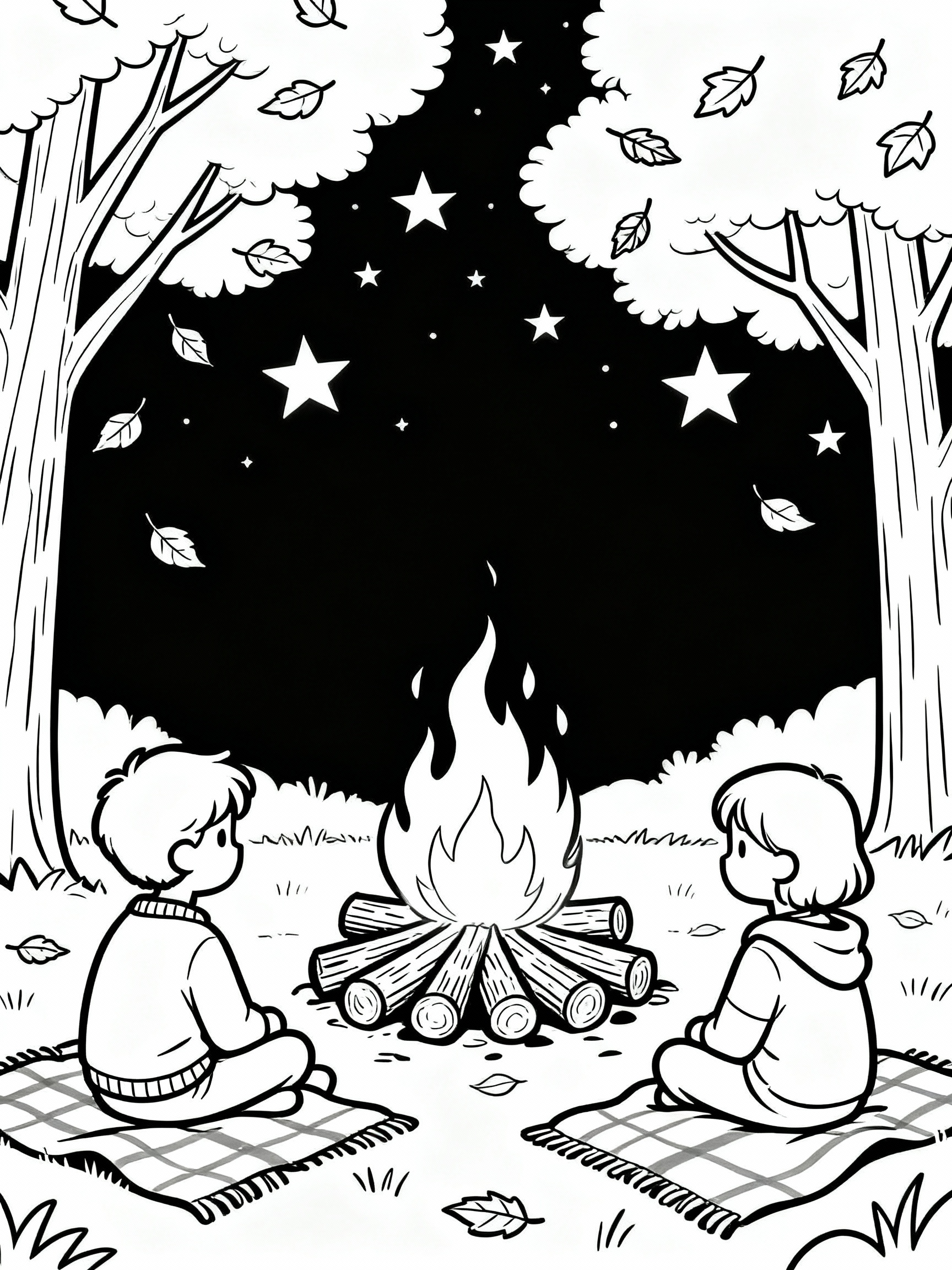 Creative Cozy Autumn Bonfire Nights Coloring Page