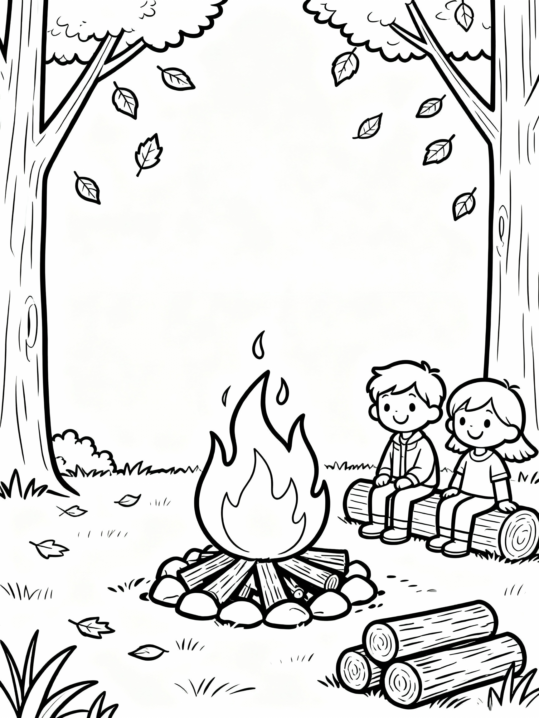Enchanting Cozy Autumn Bonfire Nights Coloring Page