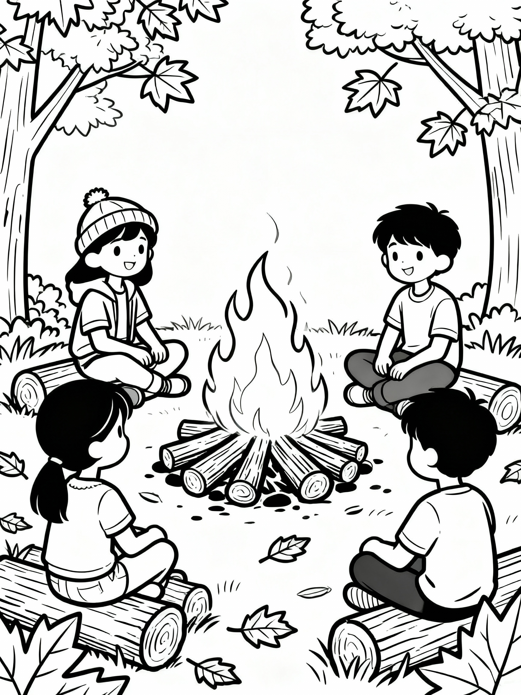 Fun Cozy Autumn Bonfire Nights Coloring Page