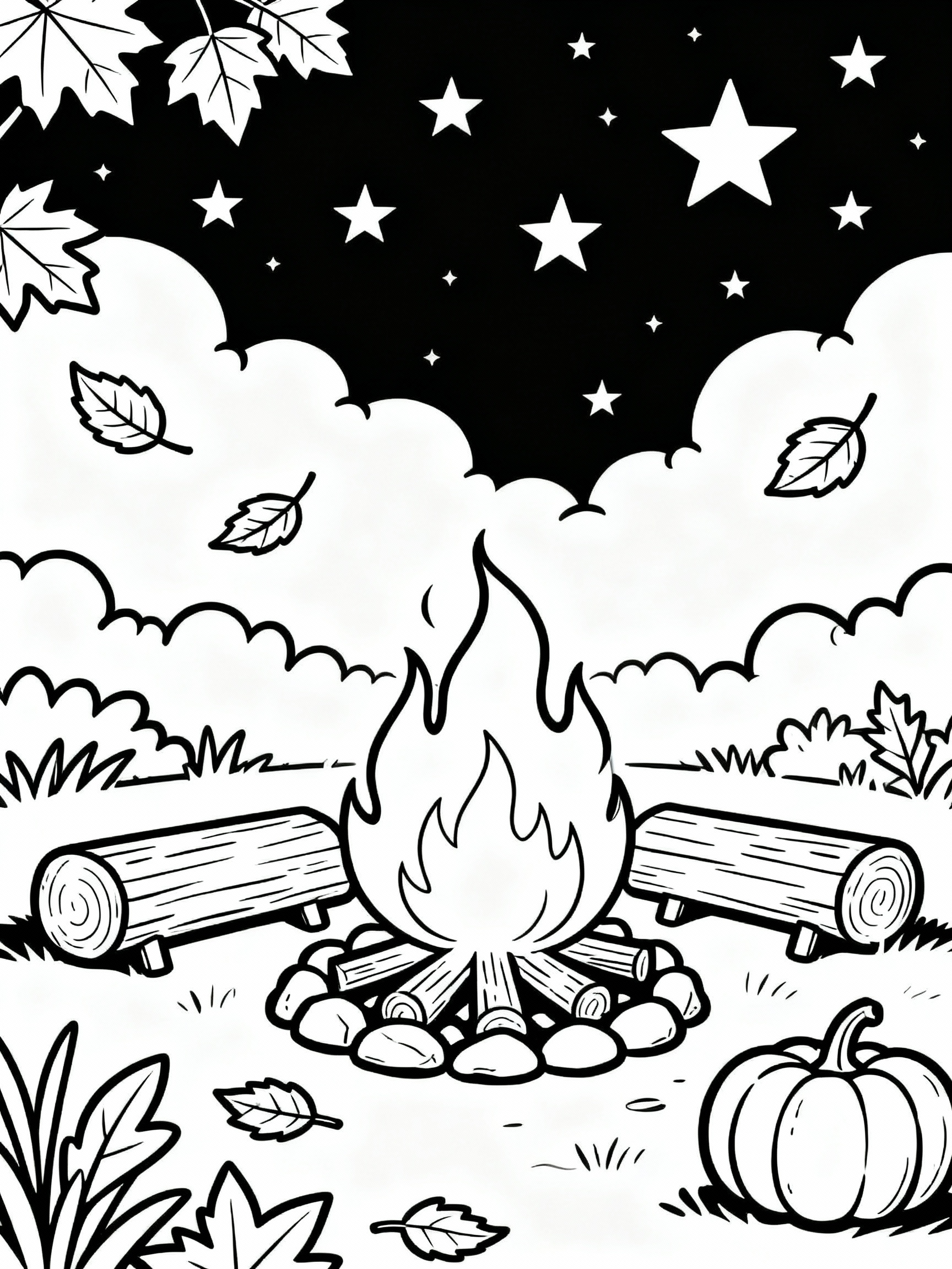 Download: Incredible Cozy Autumn Bonfire Nights Coloring Page