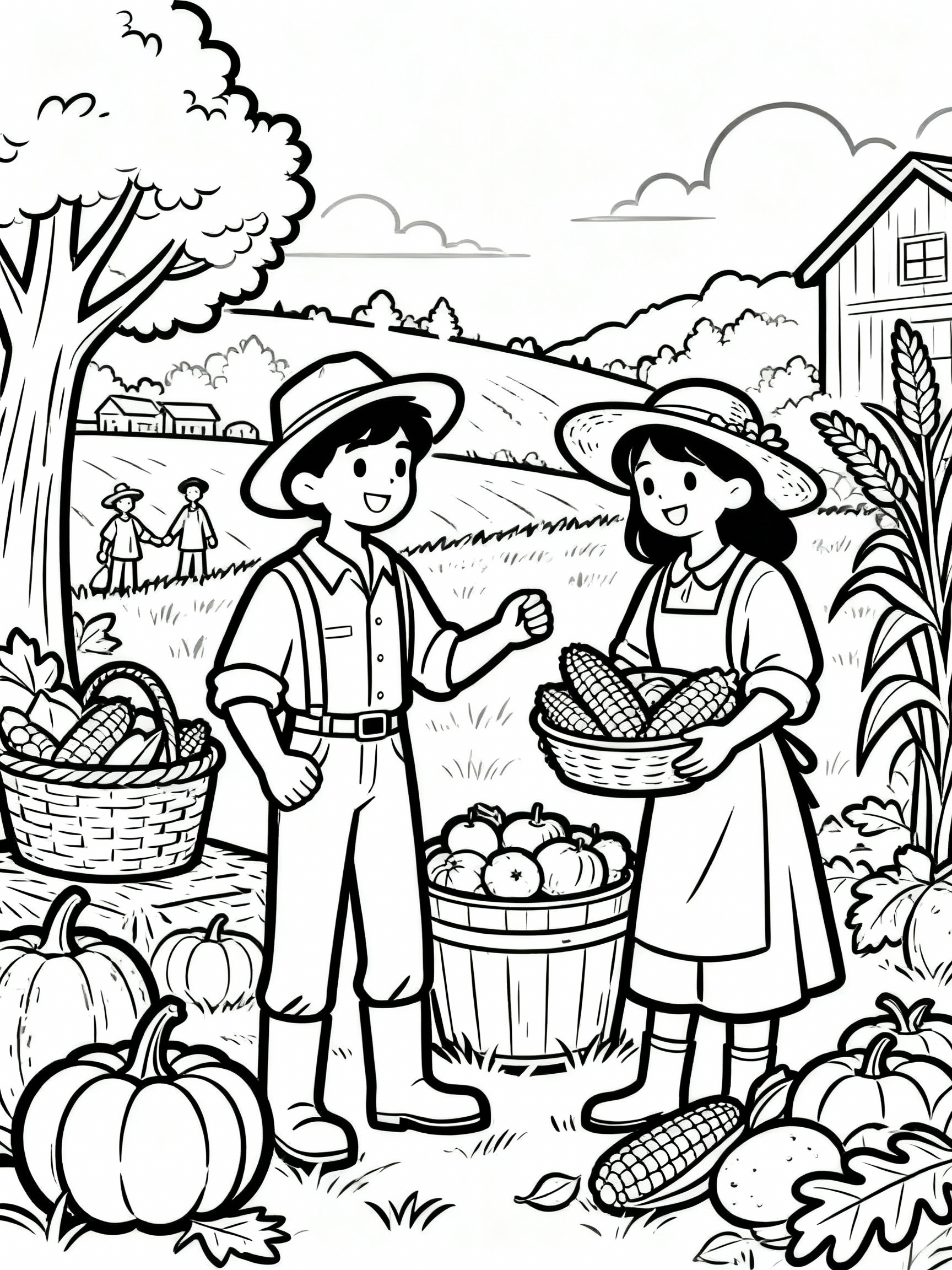 Joyful Cute Autumn Harvest Festivities Coloring Page