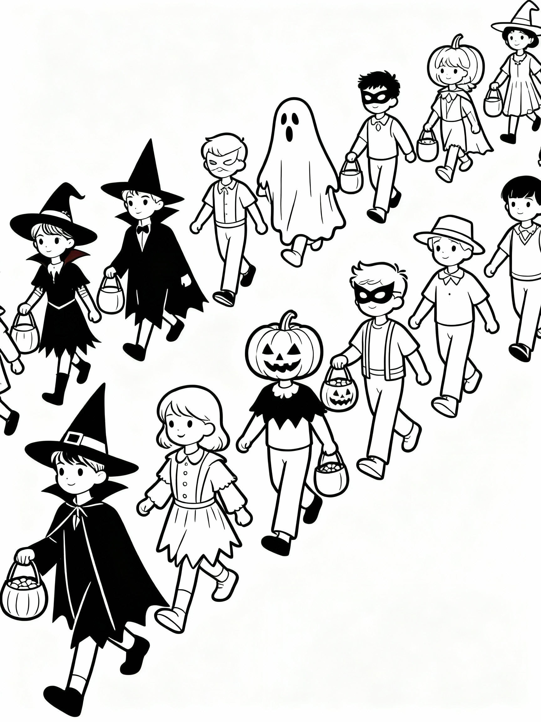 Download: Beautiful Halloween Costume Parade Coloring Page