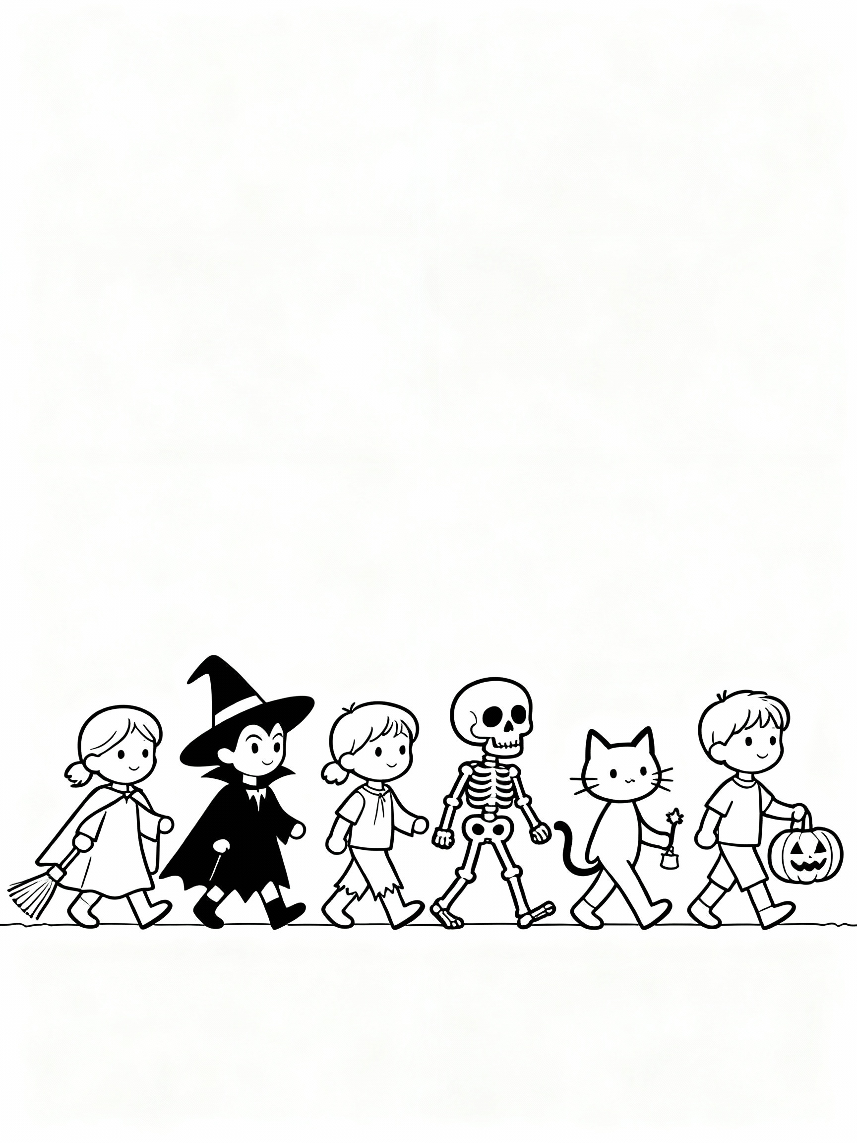 Download: Delightful Cartoon Halloween Costume Parade Coloring Page