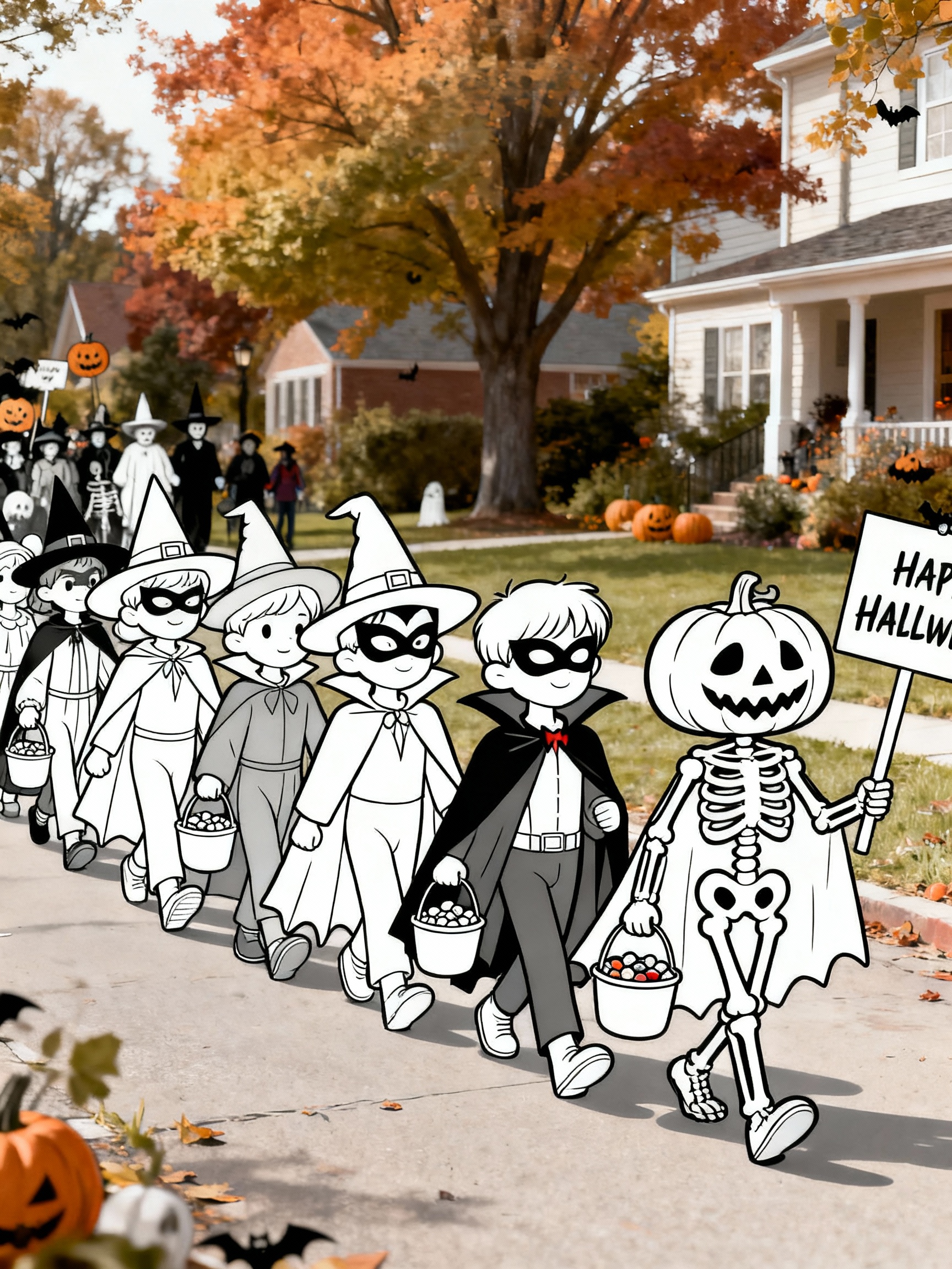 Amazing Halloween Costume Parade Coloring Pages (Free PDF Printables)