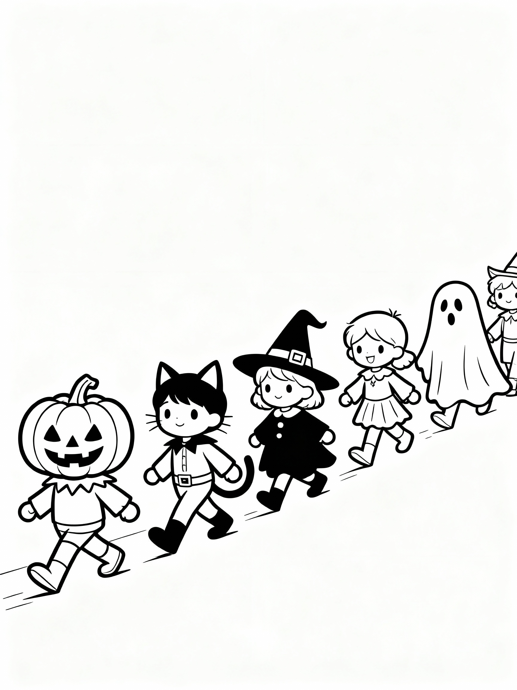 Download: Outstanding Halloween Costume Parade Coloring Page