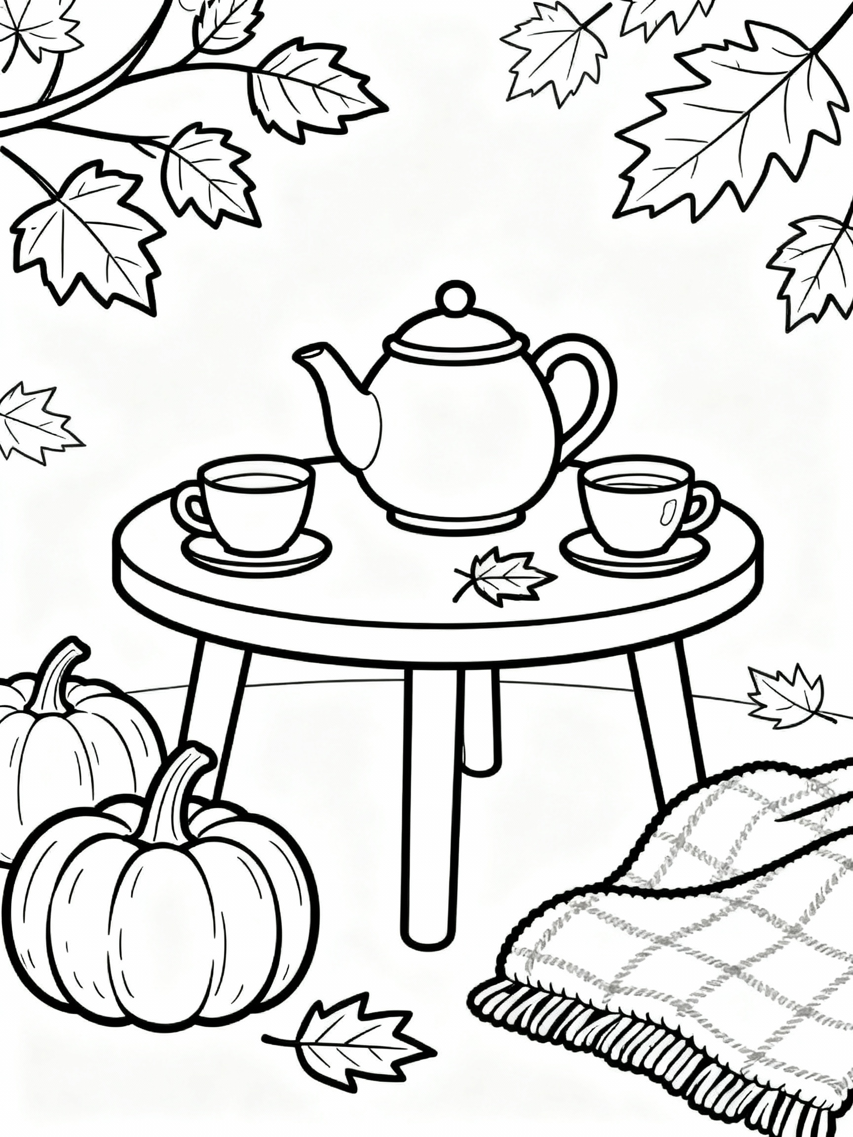 Download: Beautiful Cozy Autumn Tea Party Coloring Page