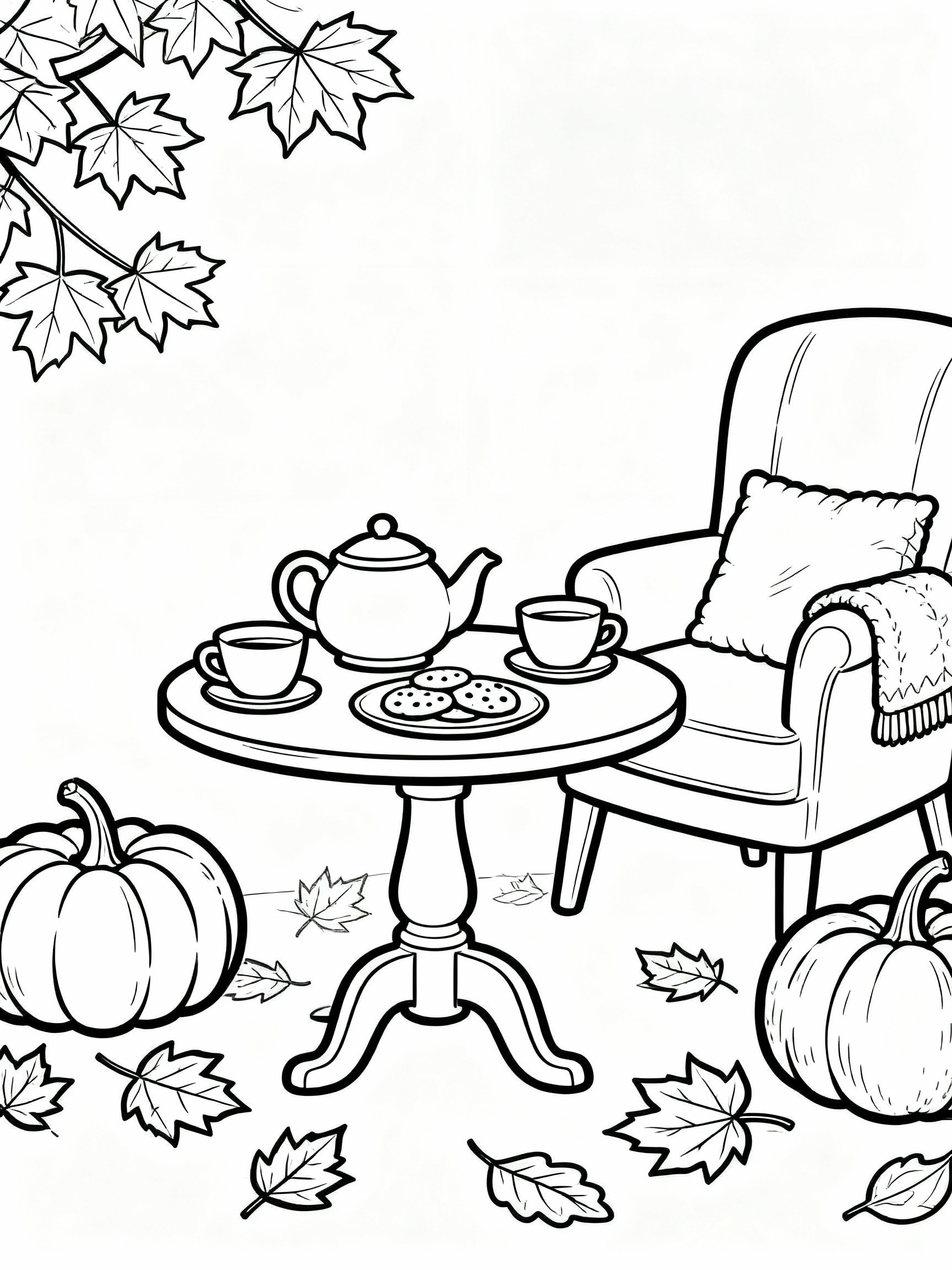 Creative Cozy Autumn Tea Party Coloring Page