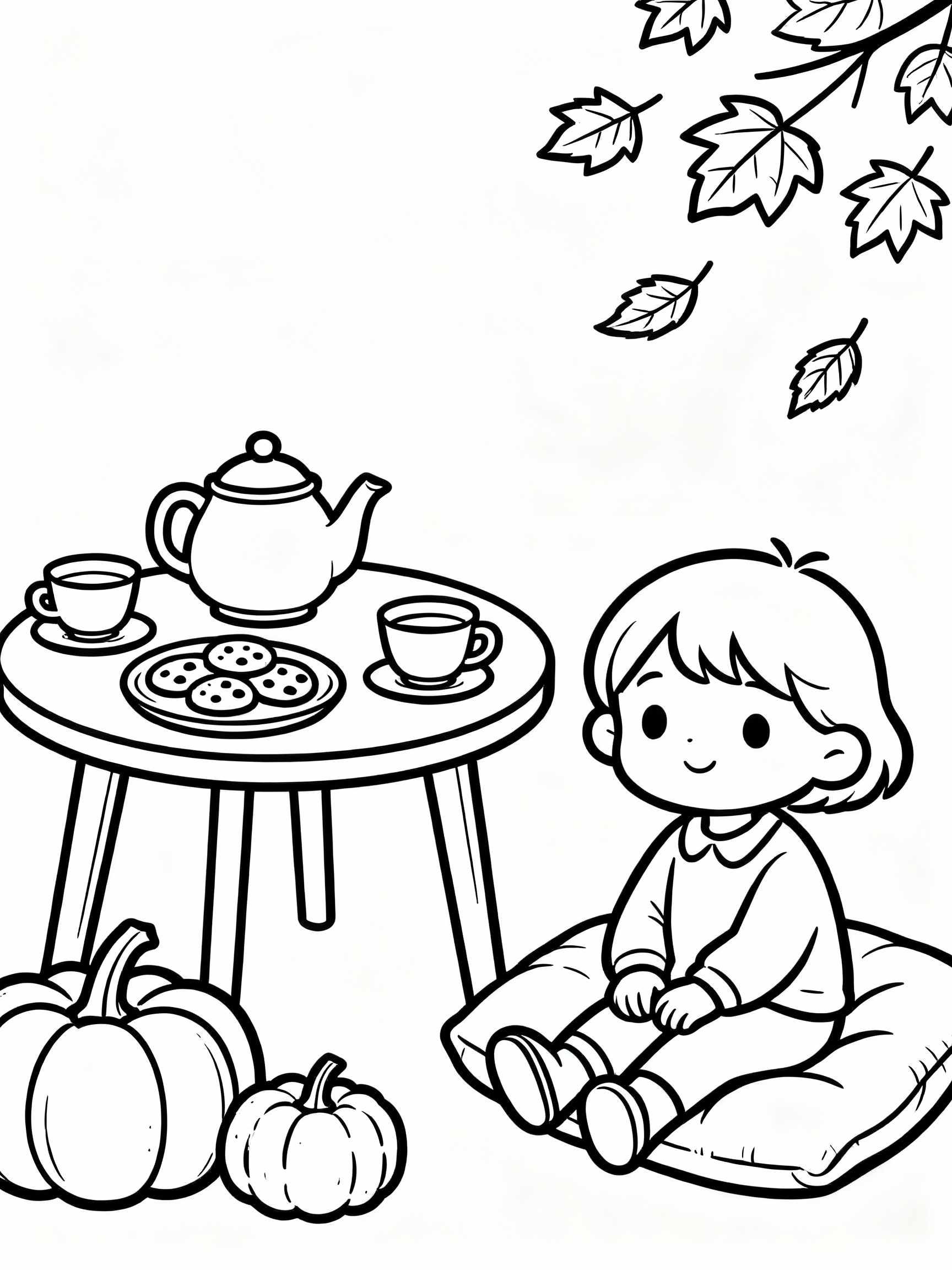 Download: Gorgeous Cozy Autumn Tea Party In Nature Coloring Page