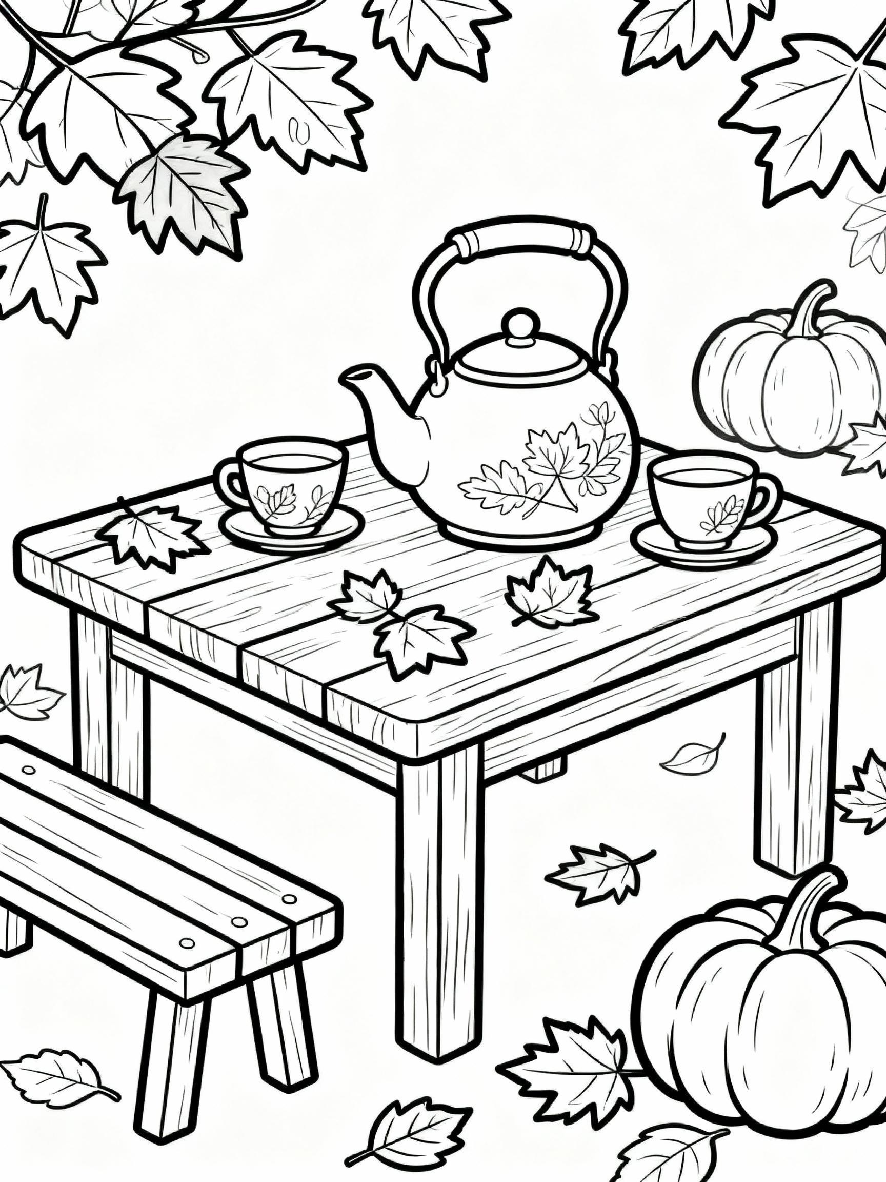 Download: Incredible Cozy Autumn Tea Party Coloring Page