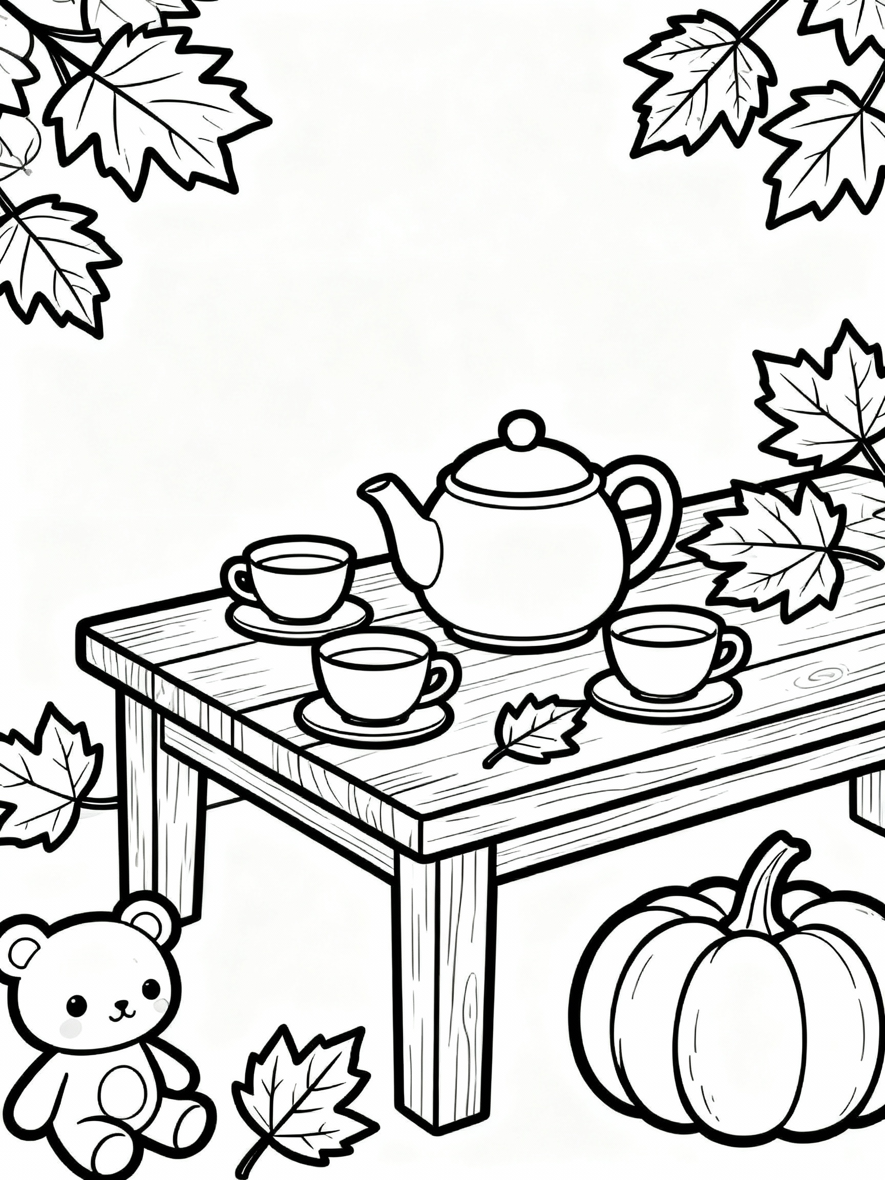 Download: Lovely Cozy Autumn Tea Party Coloring Page