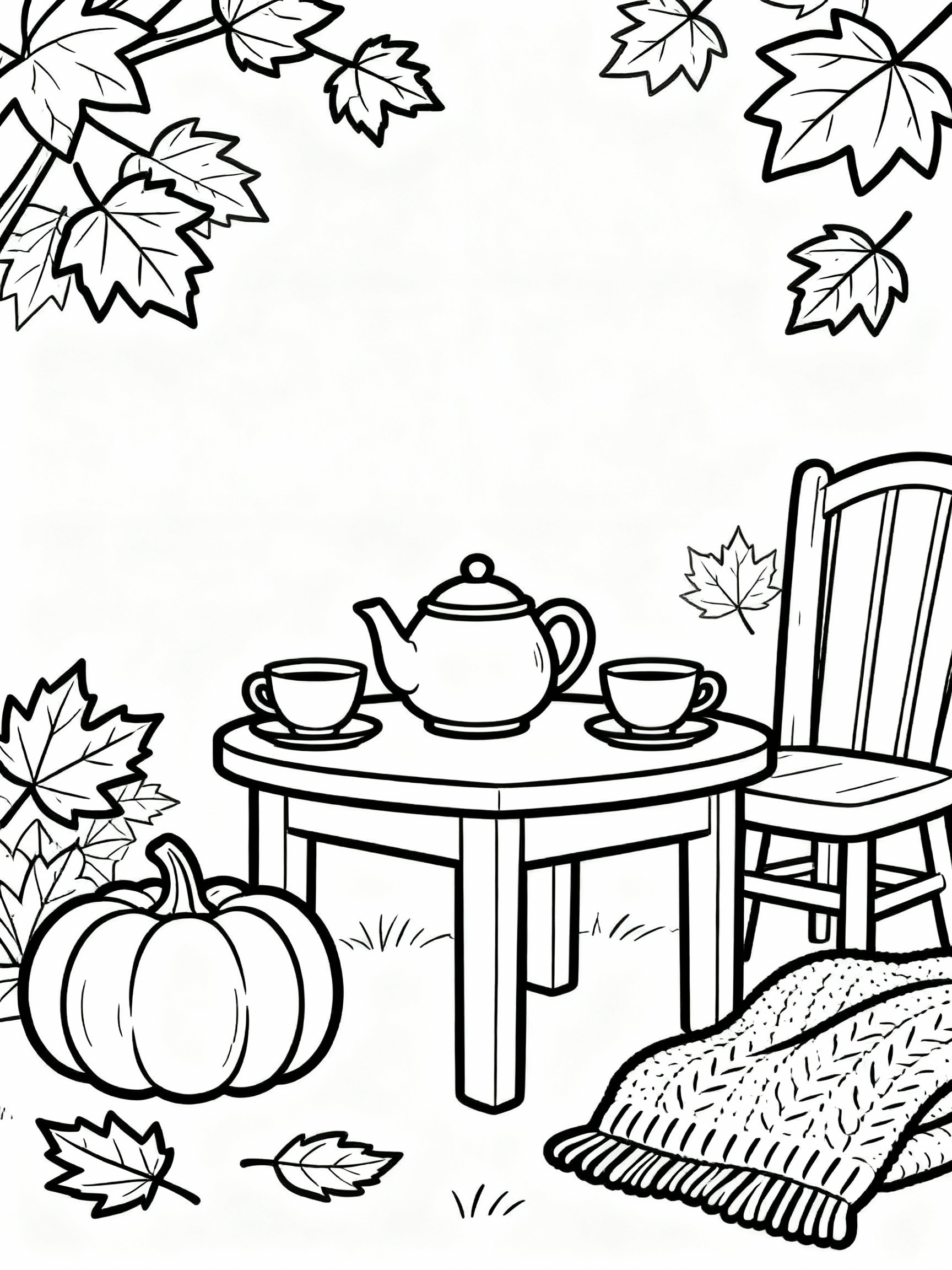 Magical Cozy Autumn Tea Party Coloring Page