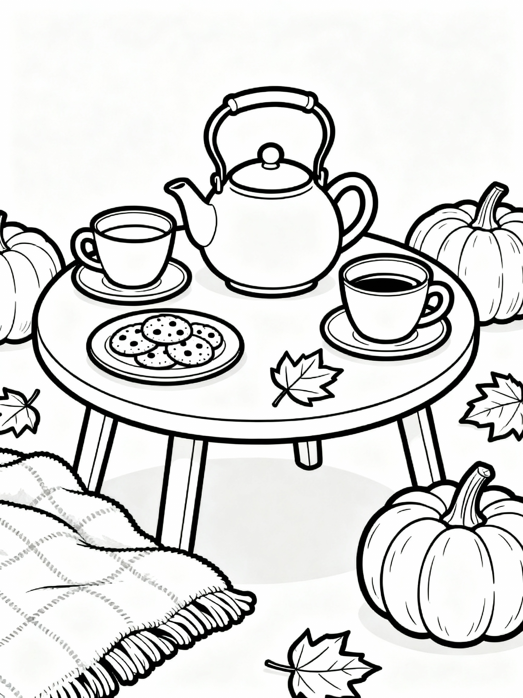 Nice Happy Cozy Autumn Tea Party Coloring Page