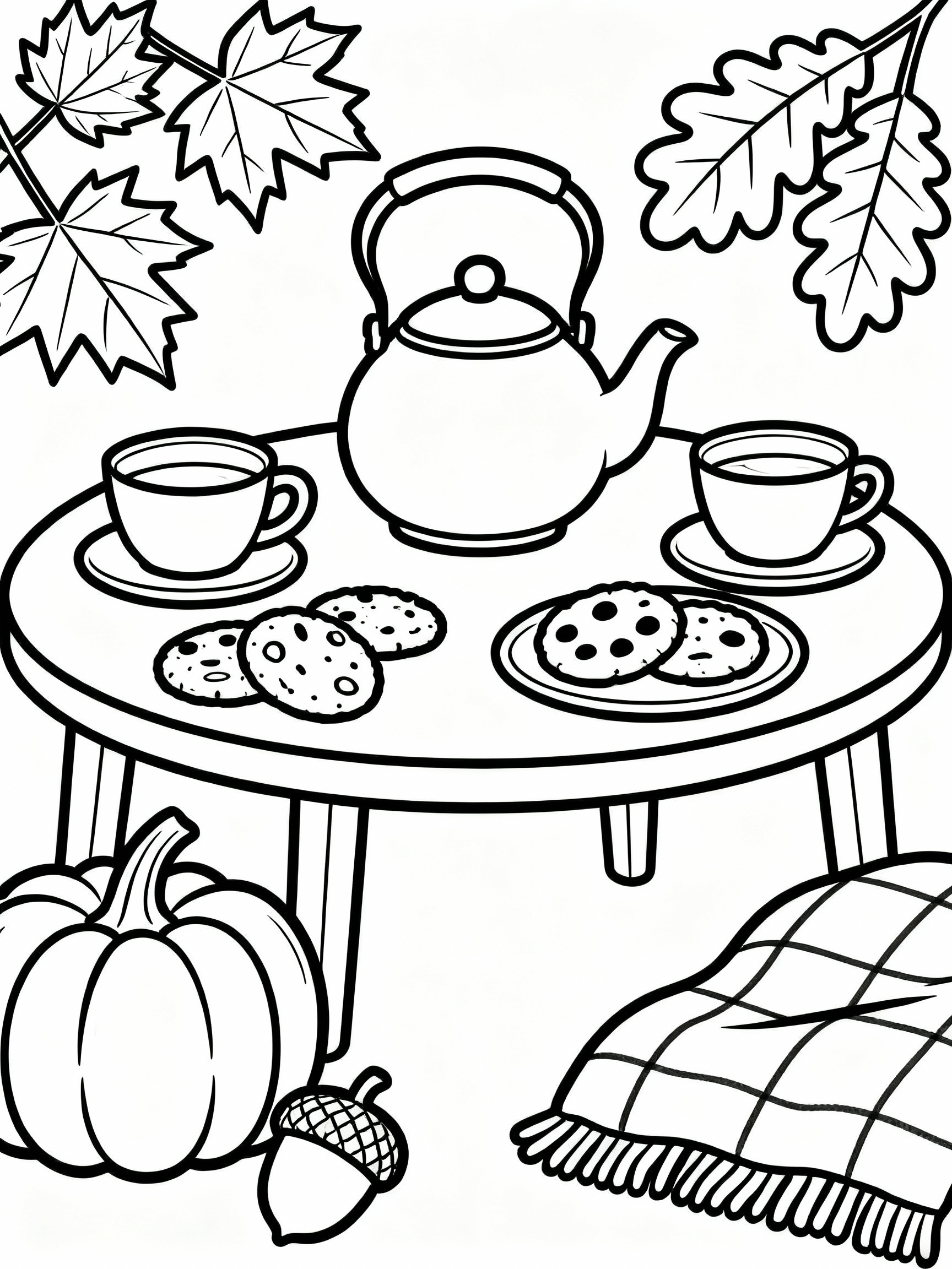 Download: Perfect Cozy Autumn Tea Party Coloring Page