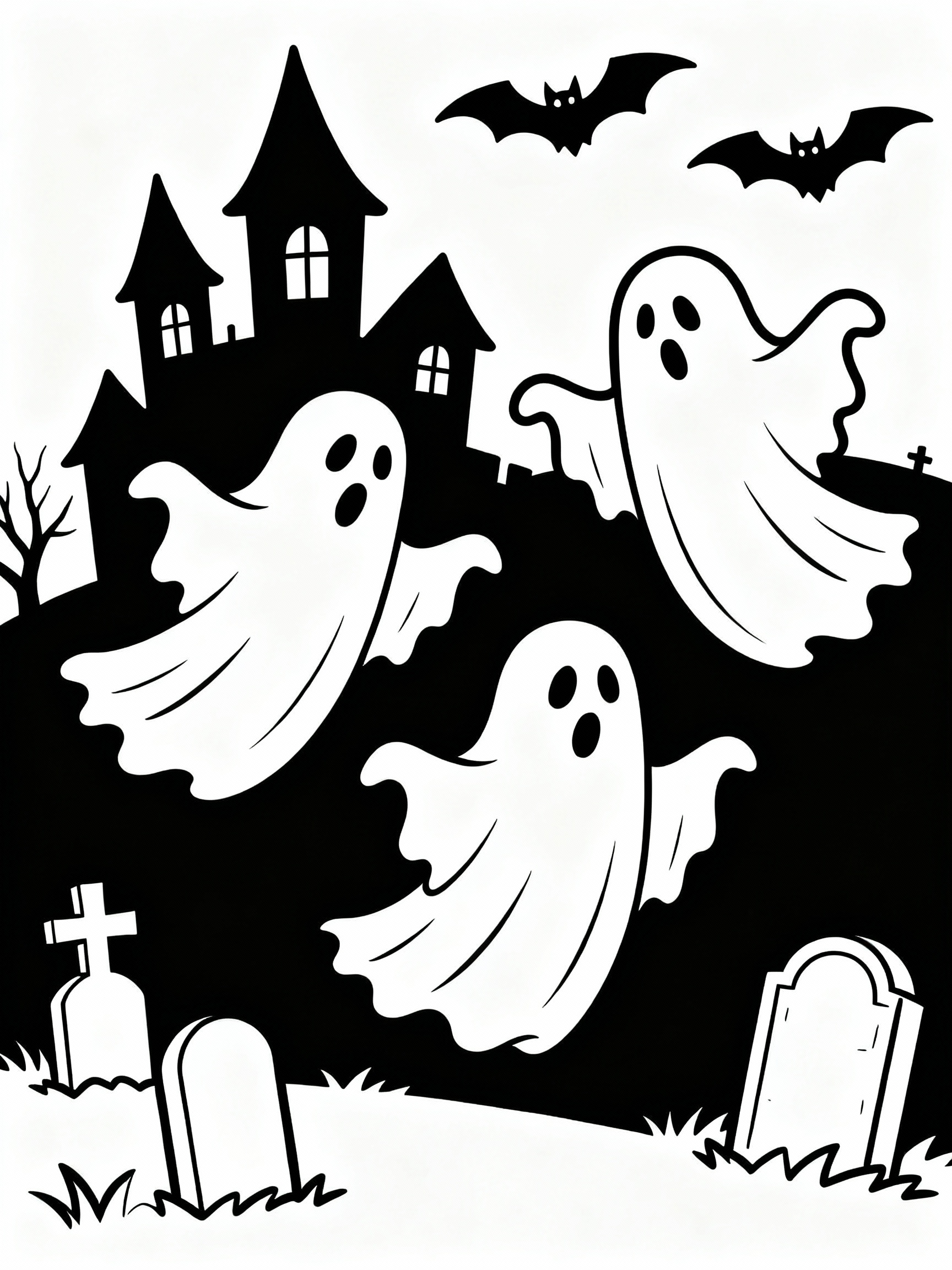 Packed with playful elements, the Fun Spooky Ghost Scenes Coloring Page invites artists of all ages to explore the lighter side of spookiness. This design combines humor with creativity, making it perfect for families and recreational artists.