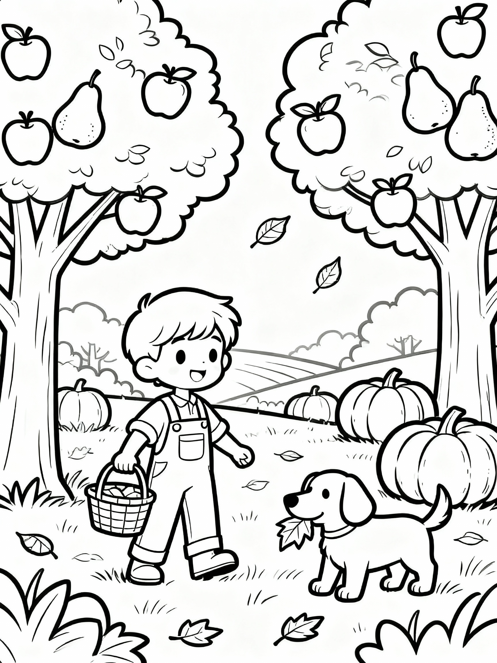 Download: Happy Autumn Orchard Adventure Coloring Page
