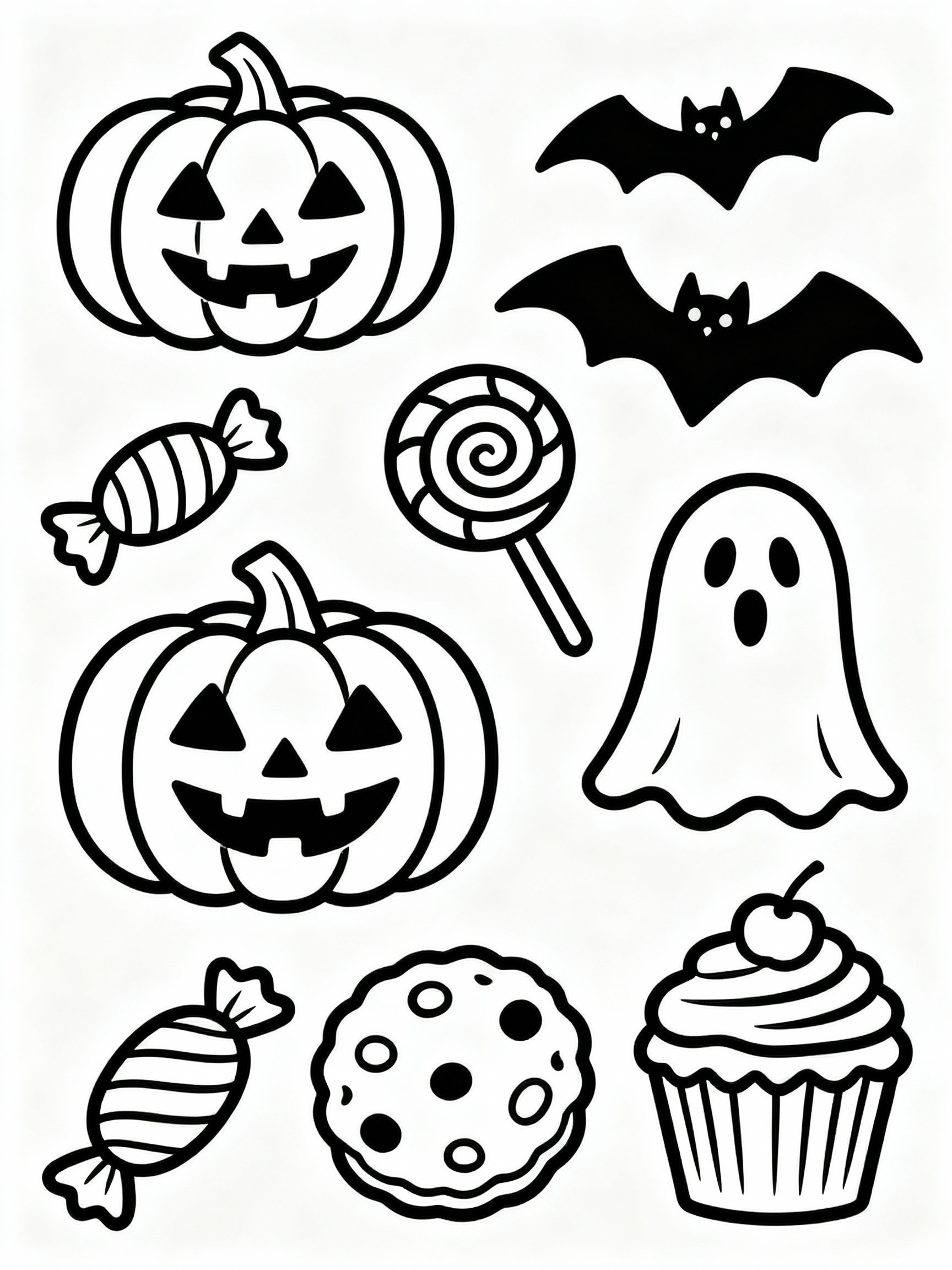 Download: Amazing Cute Halloween Treats And Sweets Coloring Page