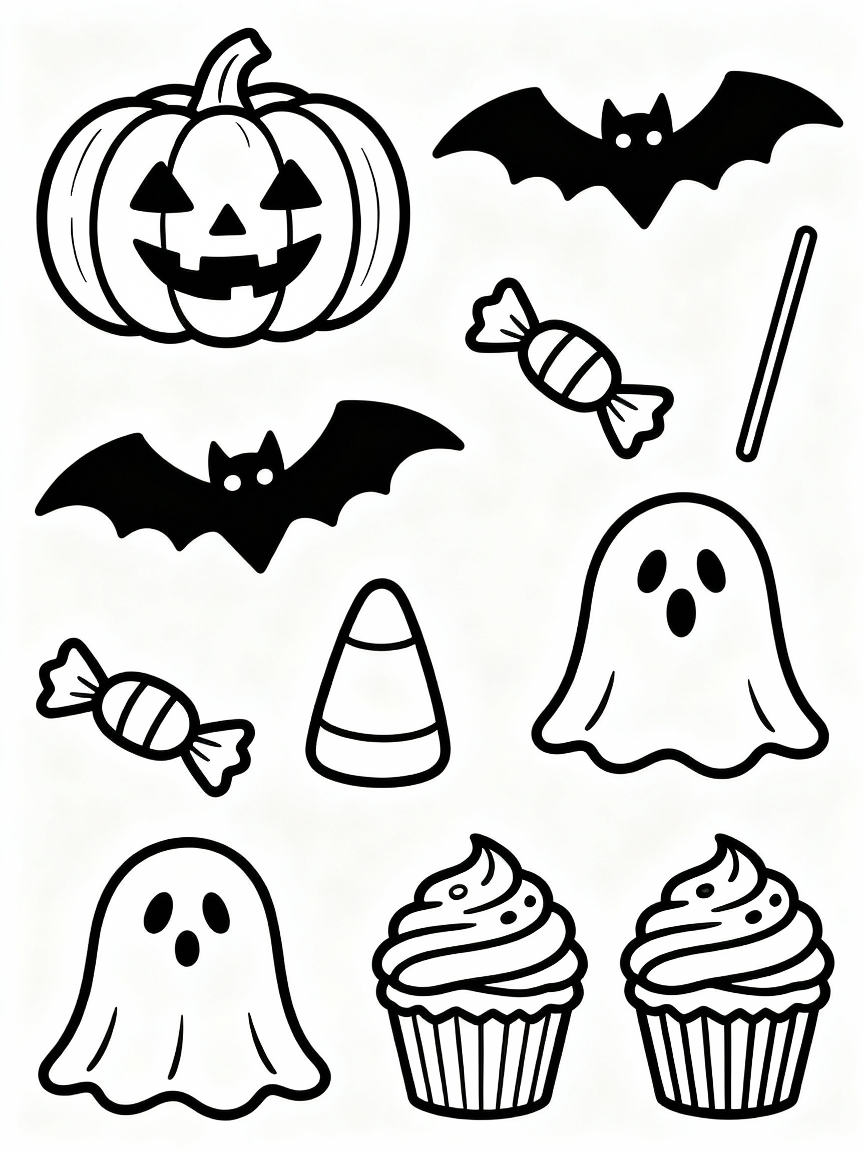 The Fun Halloween Treats And Sweets Coloring Page is brimming with vibrant and playful designs, making it a joy for younger children. With its simple forms and engaging themes, it's perfect for ages 5 and above to enjoy a delightful Halloween coloring experience.