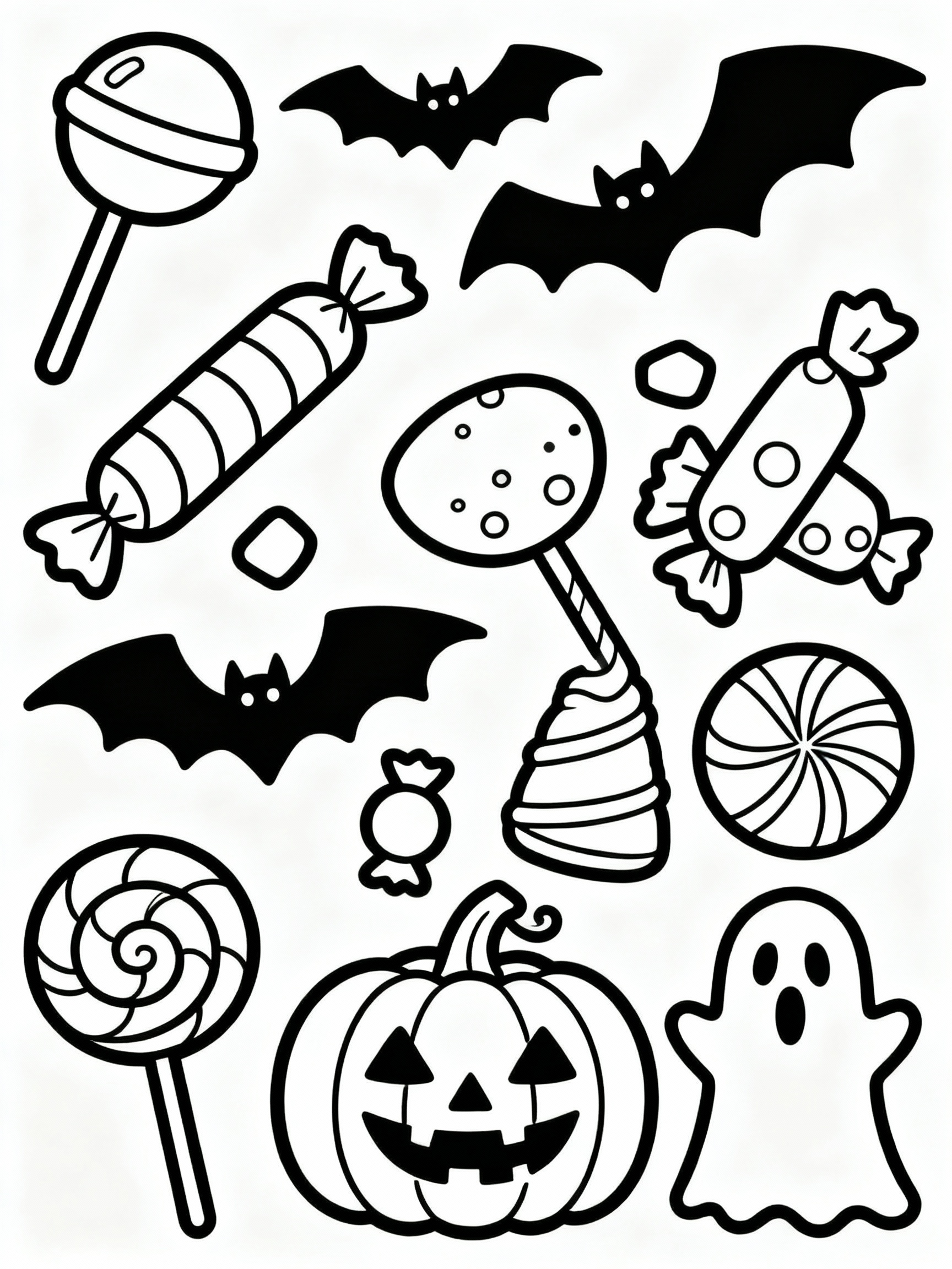Download: Happy Halloween Treats And Sweets Coloring Page