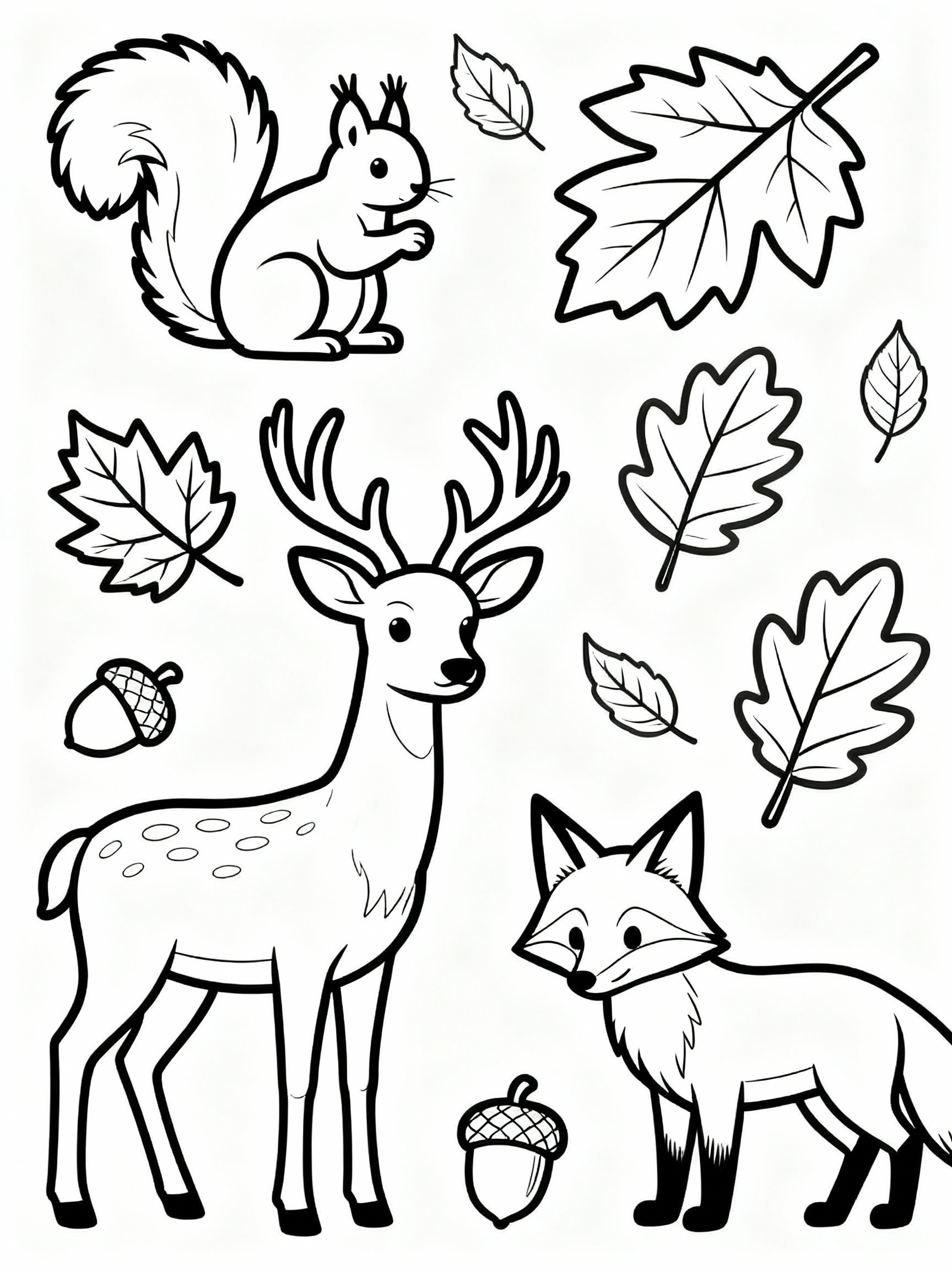The Joyful Festive Autumn Wildlife Wonders Coloring Page charms with cheerful animals amidst the splendor of fall colors, making it a delightful activity for children aged 6 and up.