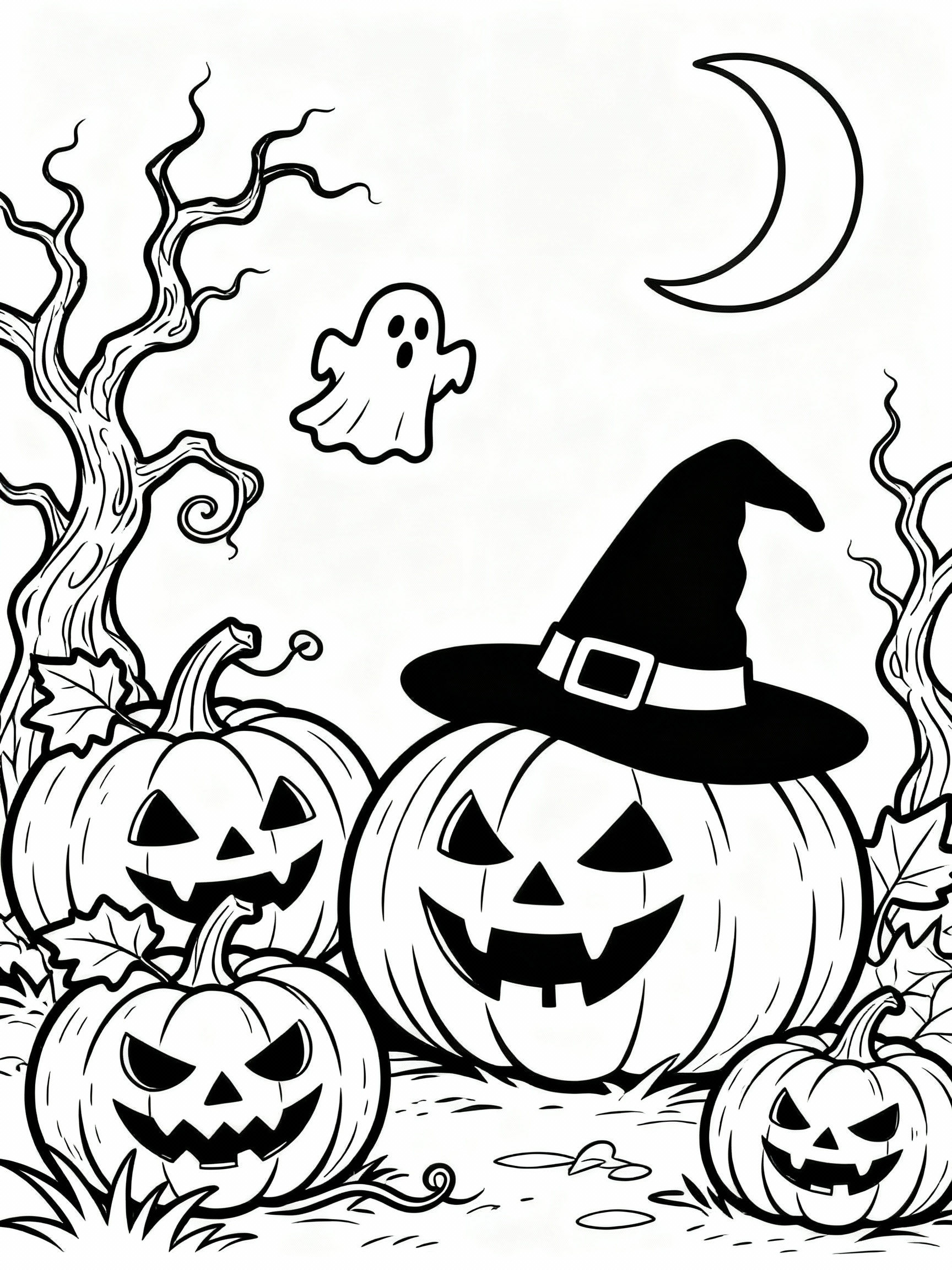 Join in the festive fun with the Fun Haunted Pumpkin Patch, bursting with playful elements and friendly ghosts. This whimsical coloring page is easy and enjoyable for younger kids, fostering early interests in art and creativity.
