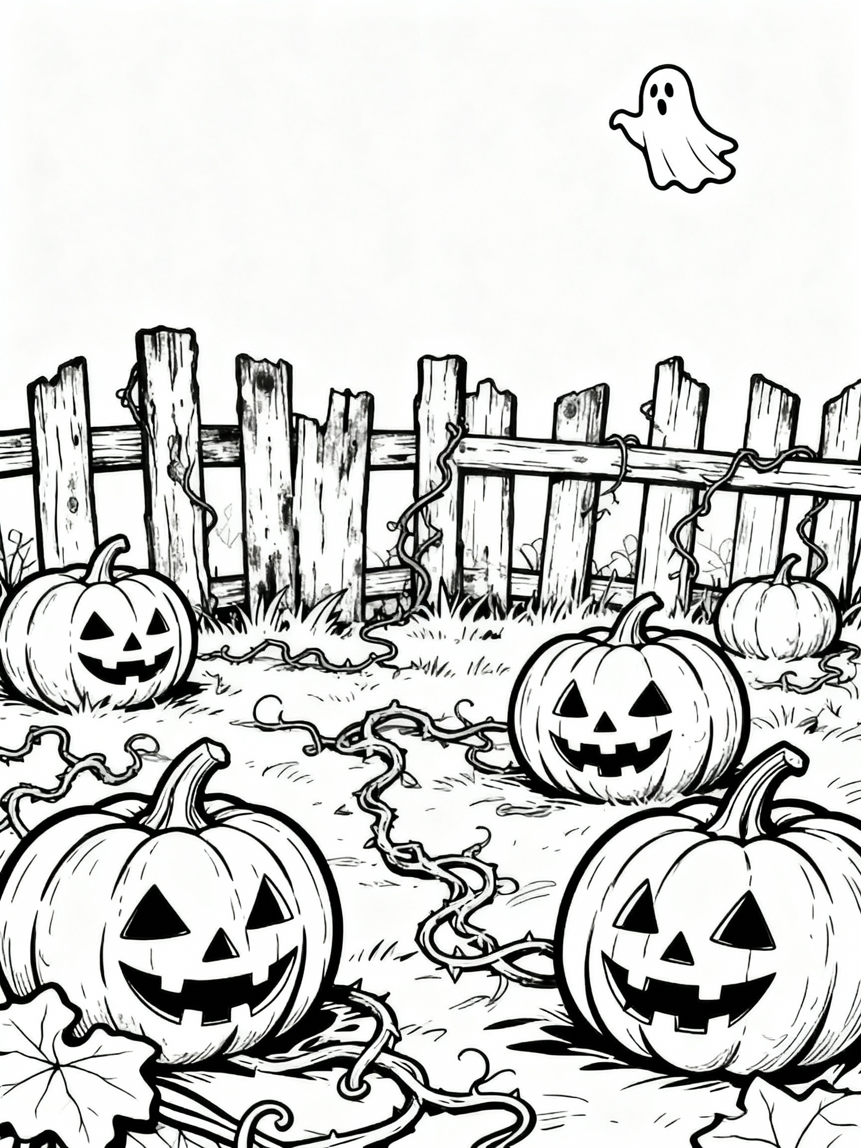 Explore the enchanting allure of the Magical Haunted Pumpkin Patch, filled with mystical creatures and captivating scenery. This moderately challenging coloring page is suited for older children and adults ready to unleash their creativity.